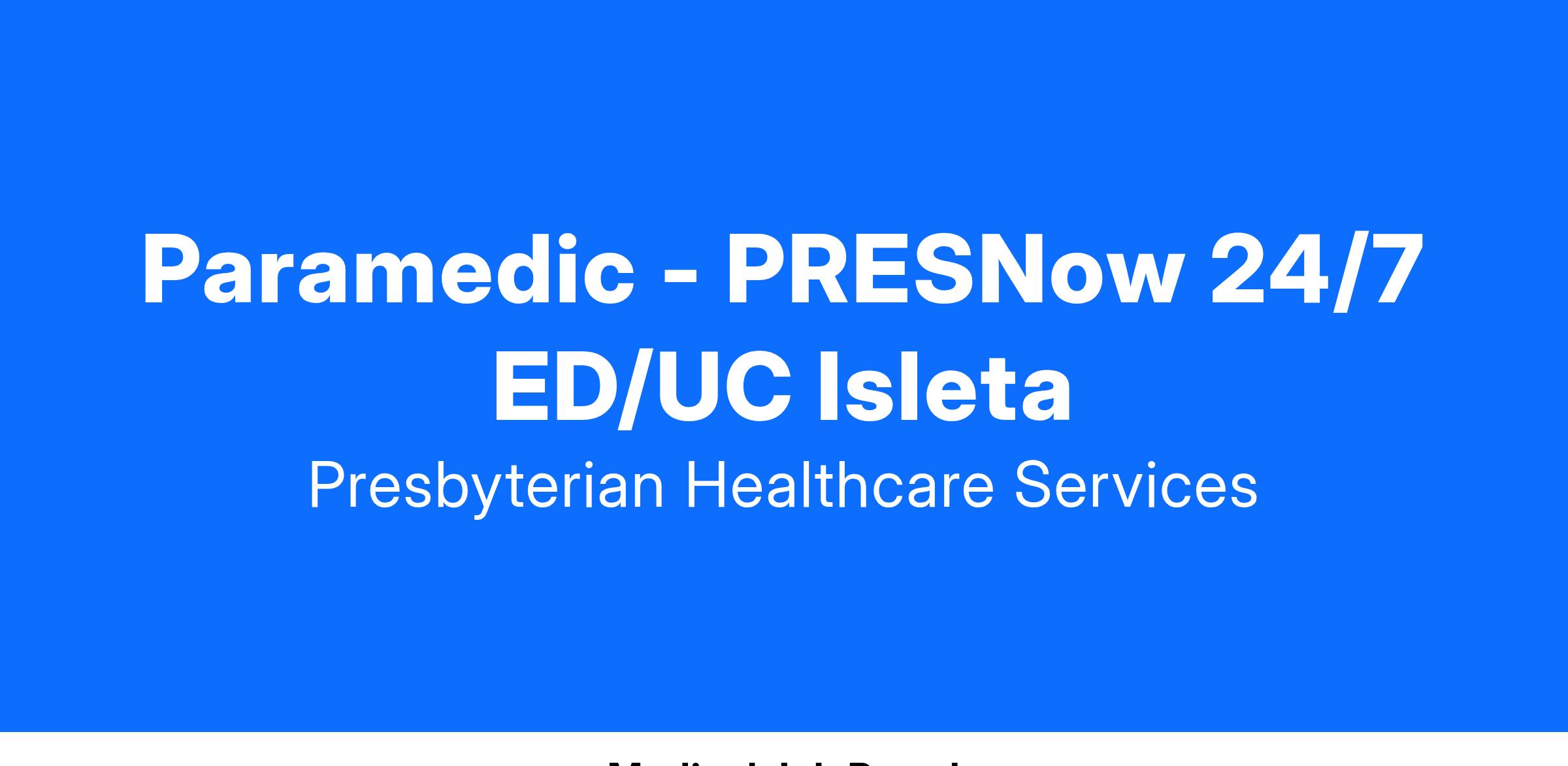 Previous EMS Dispatch experience preferred. 2 years ED patient care experience including triage experience preferred. Bachelor degree (any field of study) and 2 years of direct patient care experience. Current NM Paramedic licensure required. National EMD licensure preferred.