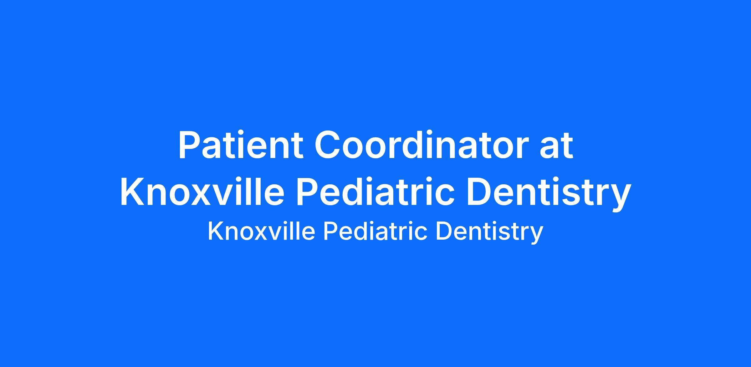 Knoxville Pediatric Dentistry is seeking a friendly, organized, and compassionate Patient Coordinator to join our well-established pediatric dental team. With a strong reputation for exceptional patient care and a fun, family-focused environment, this is a wonderful opportunity to grow your career in a supportive, patient-centered practice. The ideal candidate is motivated, detail-oriented, and passionate about creating positive experiences for children and their families.