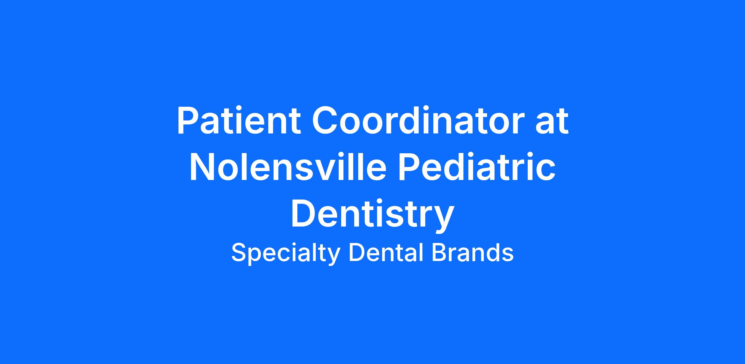 Nolensville Pediatric Dentistry is seeking a skilled and compassionate Patient Coordinator to join our growing team. With a strong reputation for providing exceptional pediatric dental care in a warm, welcoming environment, this is an exciting opportunity to grow your career in a patient-centered practice. The ideal candidate is organized, friendly, and passionate about creating a positive experience for every child and family we serve.
