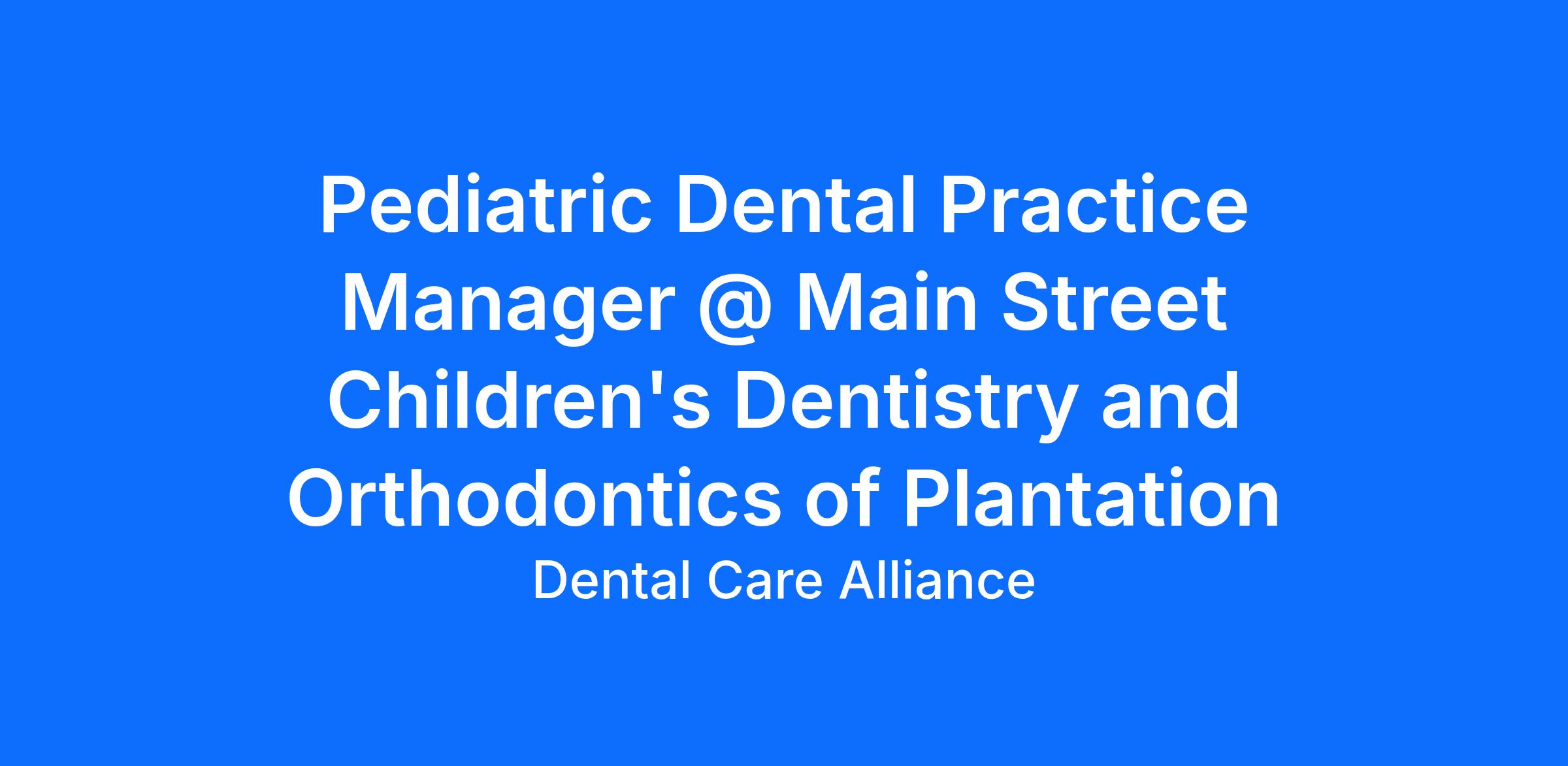 Main Street Children's Dentistry and Orthodontics of Plantation is looking for a Dental Practice Manager in Plantation, FL to assist our clinical team by providing a high level of patient care and satisfaction while operating in a team-based environment.