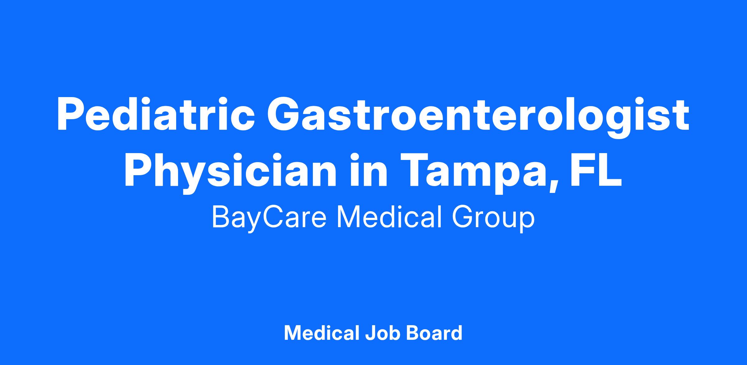 BayCare Medical Group is a physician-led medical group is seeking a board-certified or board-eligible Pediatric Gastroenterologist to join our multidisciplinary team. The ideal candidate will manage complex GI, hepatobiliary, and nutritional disorders in children—from infancy through adolescence—across inpatient, outpatient, and procedural settings