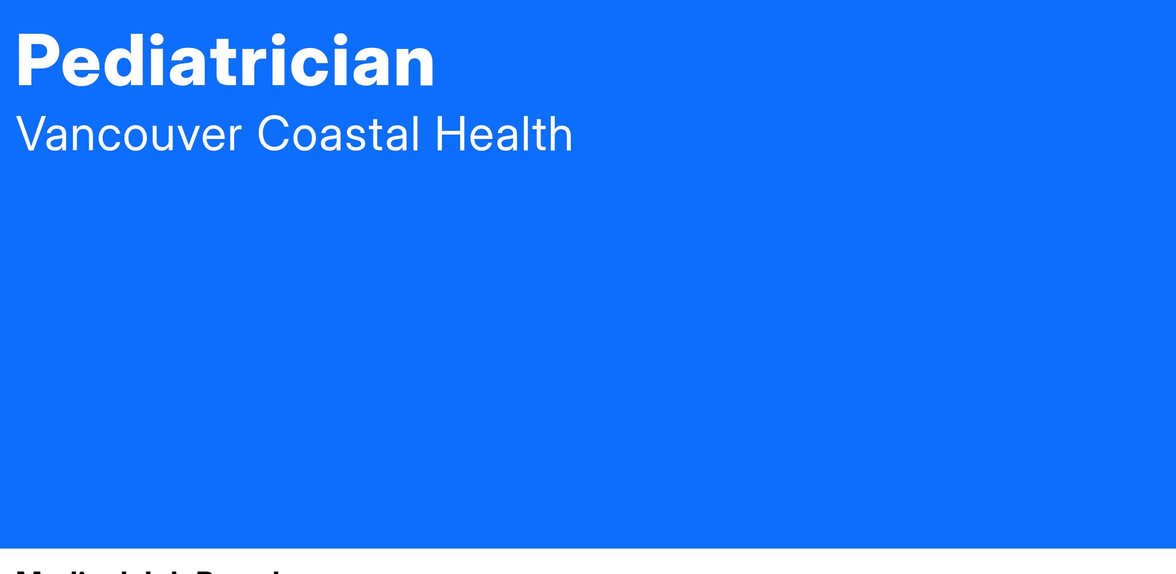 Come work as a Pediatrician with Vancouver Coastal Health (VCH)!