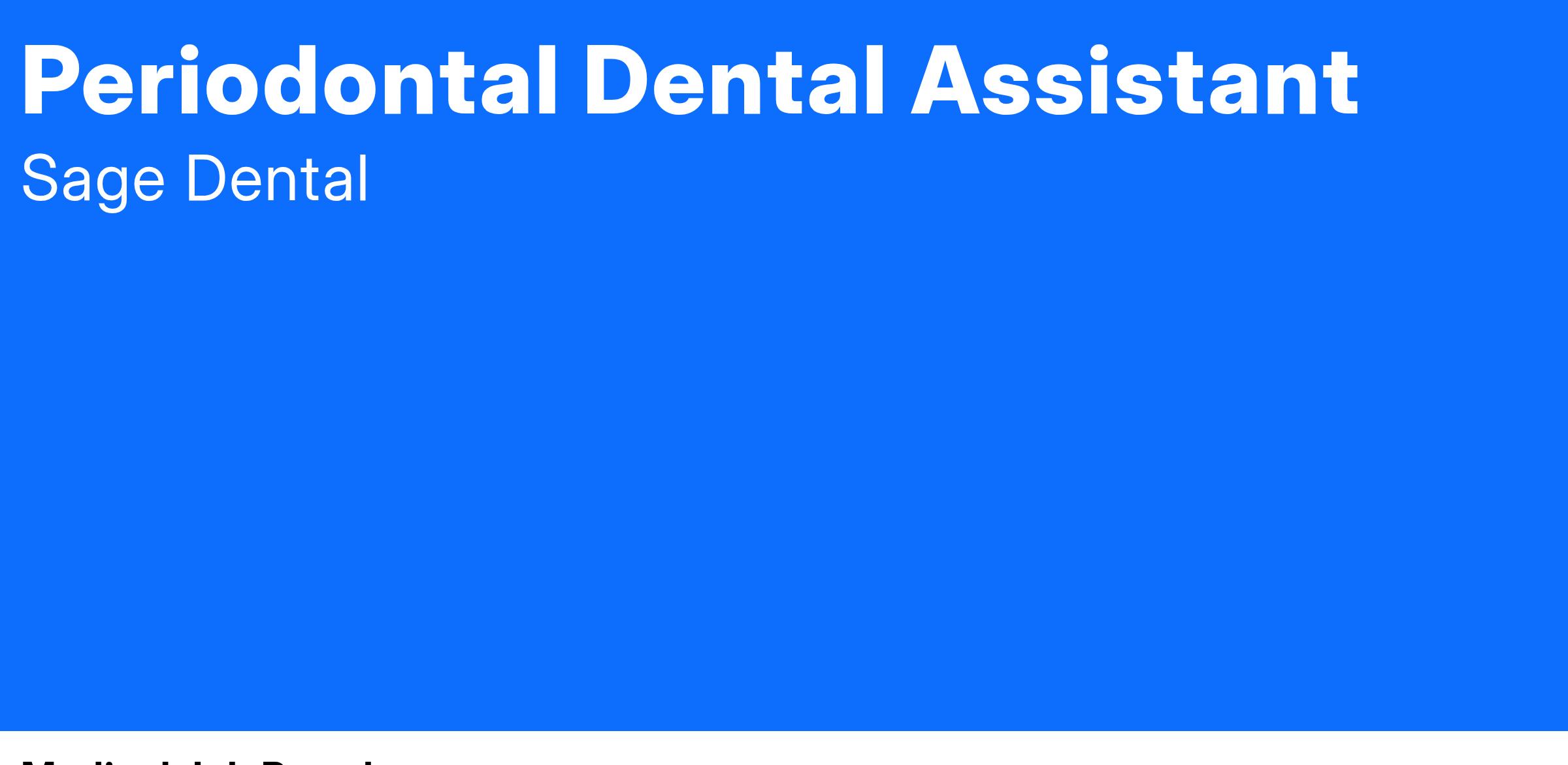 Sage Dental is seeking a Traveling Periodontal Dental Assistant to join our team in Kissimmee!
