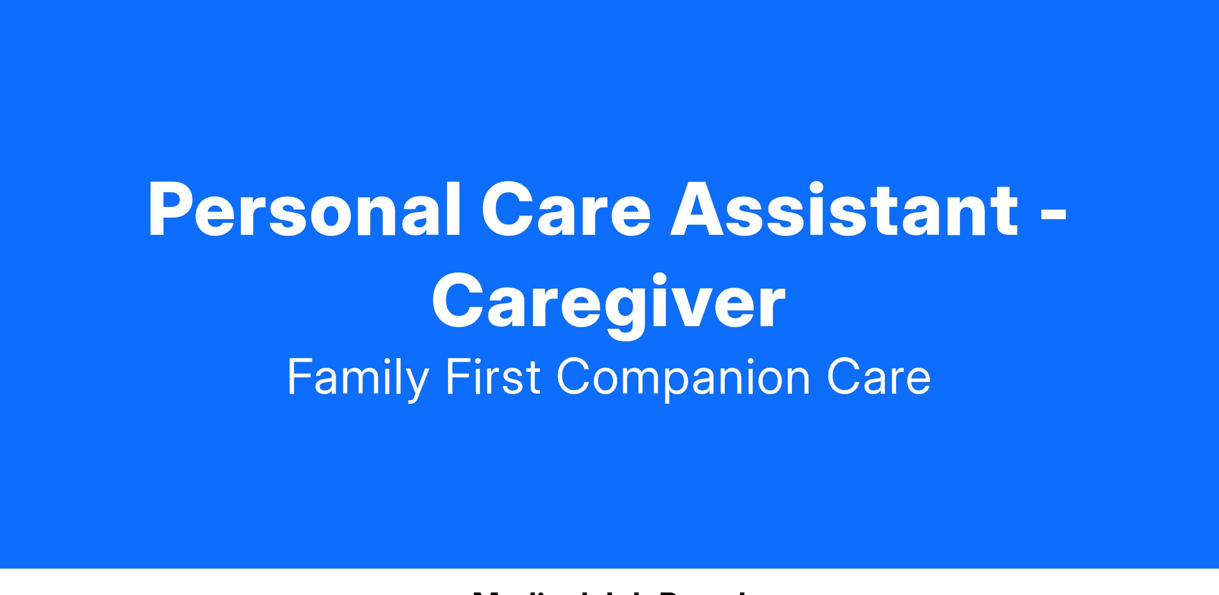 Personal Care Assistant - Caregiver