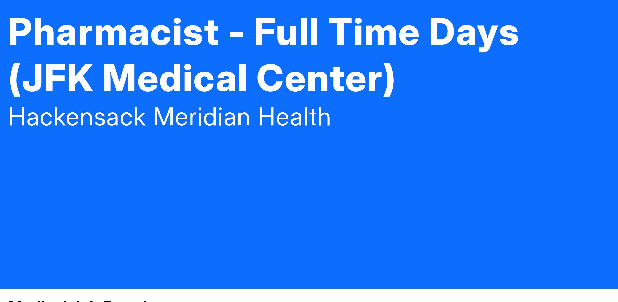 A day in the life of a Pharmacist at Hackensack Meridian Health includes: