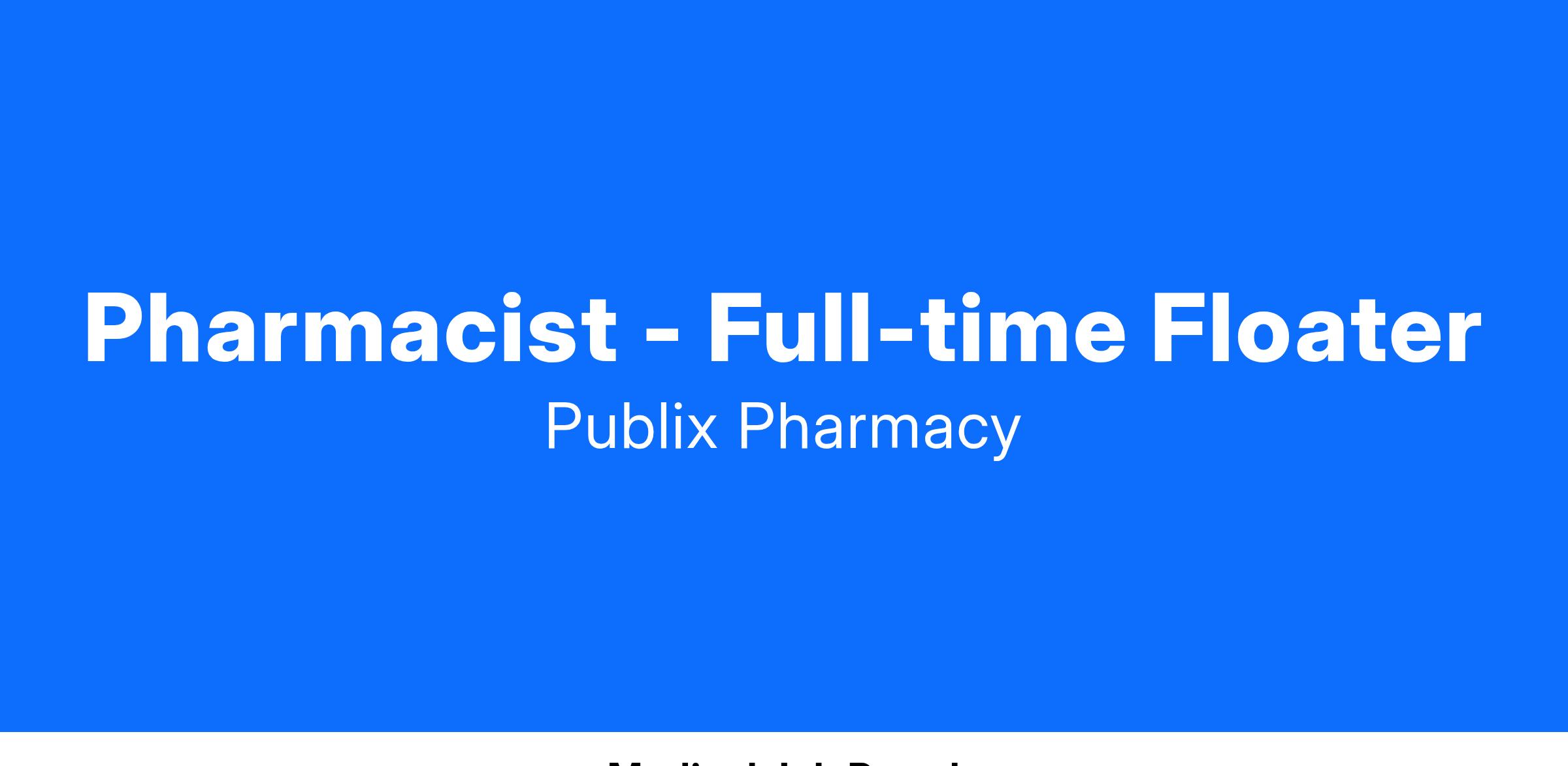 In addition to the shared basic responsibilities of all Publix associates, a Floating Pharmacistβs responsibilities include, but are not limited to, the following. As a Floating Pharmacist, you will: