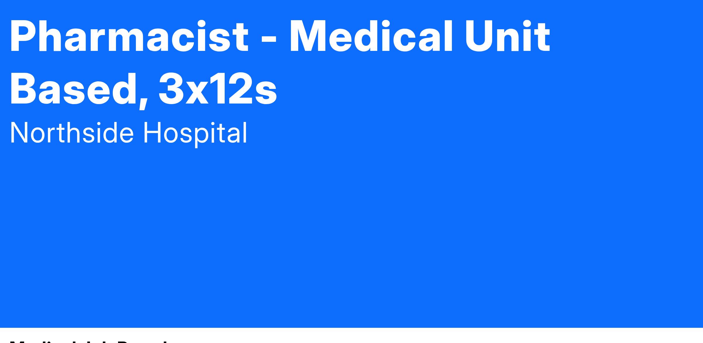 The Pharmacist will be working 3x12h shifts and every fourth weekend.