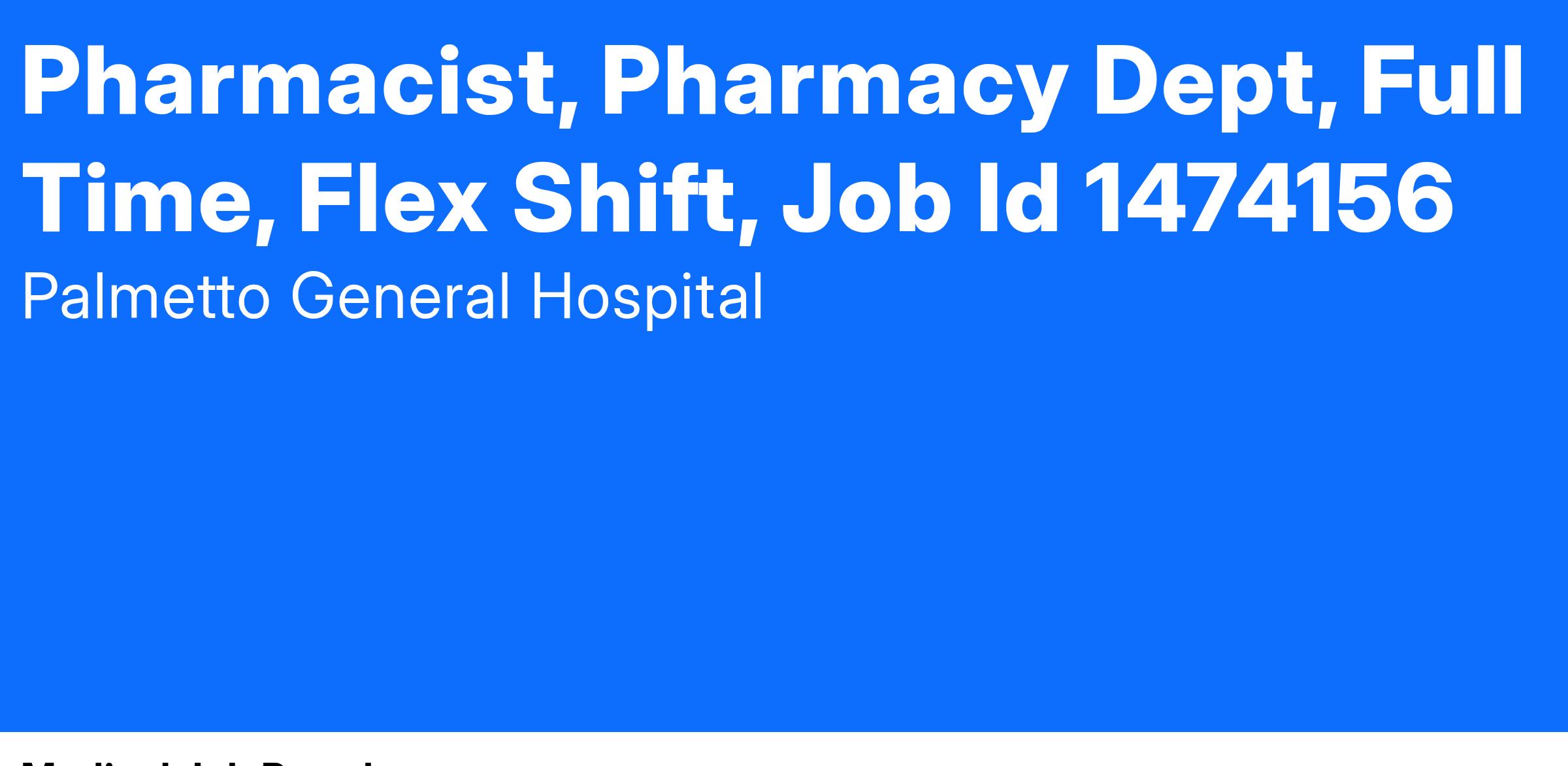 Palmetto General Hospital is proud to be a minority organization. Diversity, equity, inclusion and belonging are at the foundation of the care we provide, the community services we support and all our employment practices. We do not discriminate on the grounds of race, color, religion, sex, national origin, age, disability, veteran status, sexual orientation, gender identity, and or expression or any other non-job-related characteristic.