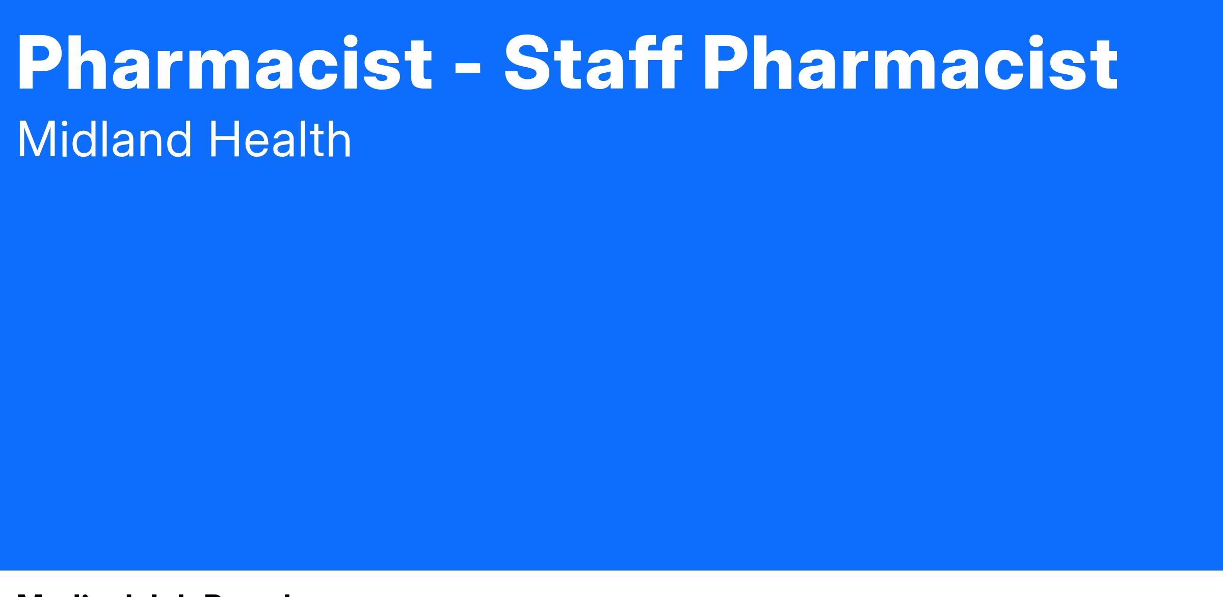 - Bachelor of Science Degree in Pharmacy or Doctor of Pharmacy Degree required