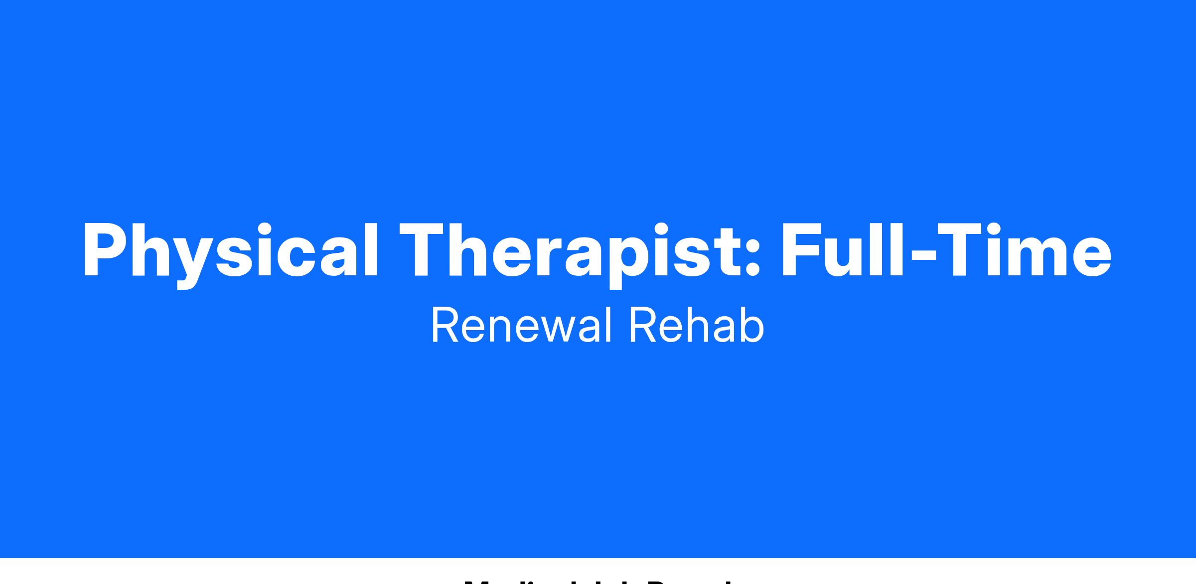Renewal Rehab is hiring! We are looking for a passionate full-time Physical Therapist to join our growing team. In the same way that you are committed to quality work, we are equally dedicated to helping you grow and succeed with us.