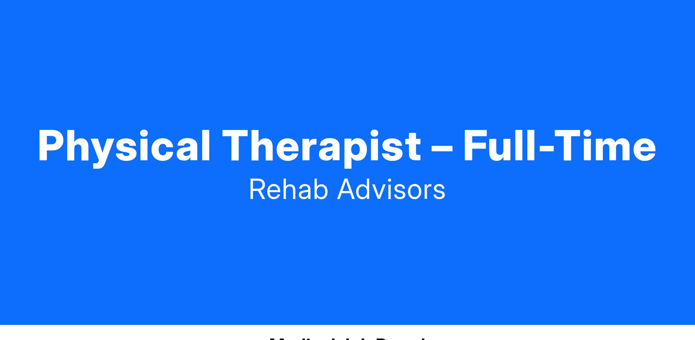 Rehab Advisors is hiring! This position is for an in-house therapy program at a Skilled Nursing Facility. We are looking for a passionate full-time Physical Therapist to join our growing team. In the same way that you are committed to quality work, we are equally dedicated to helping you grow and succeed with us.