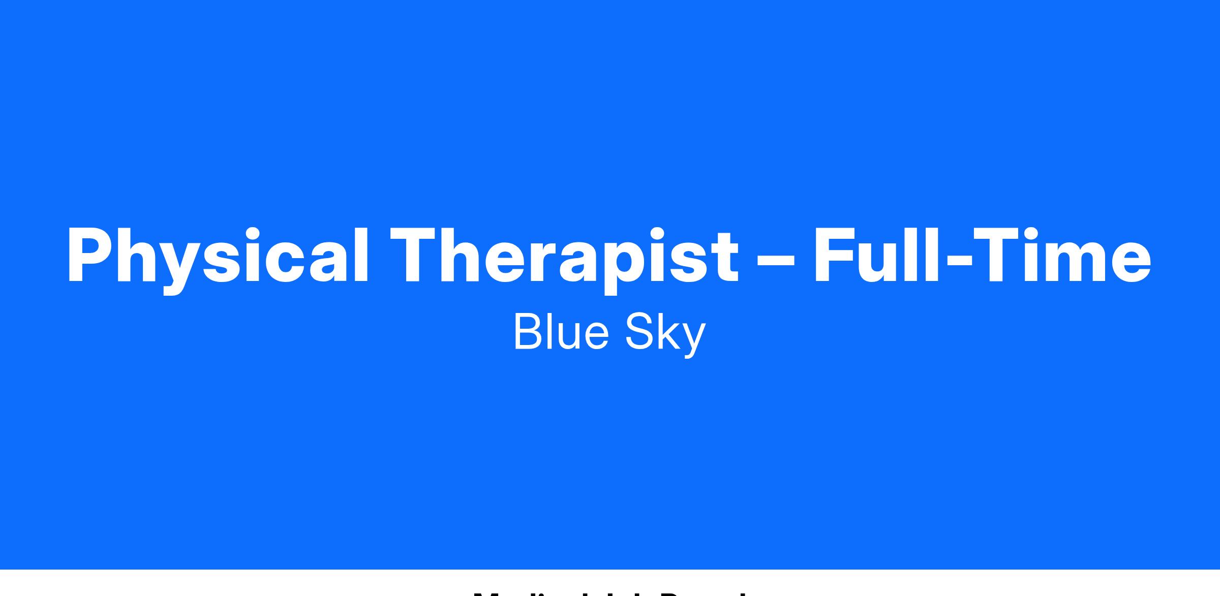 Blue Sky Therapy is hiring! We are looking for a passionate full-time Physical Therapist to join our growing team. In the same way that you are committed to quality work, we are equally dedicated to helping you grow and succeed with us.