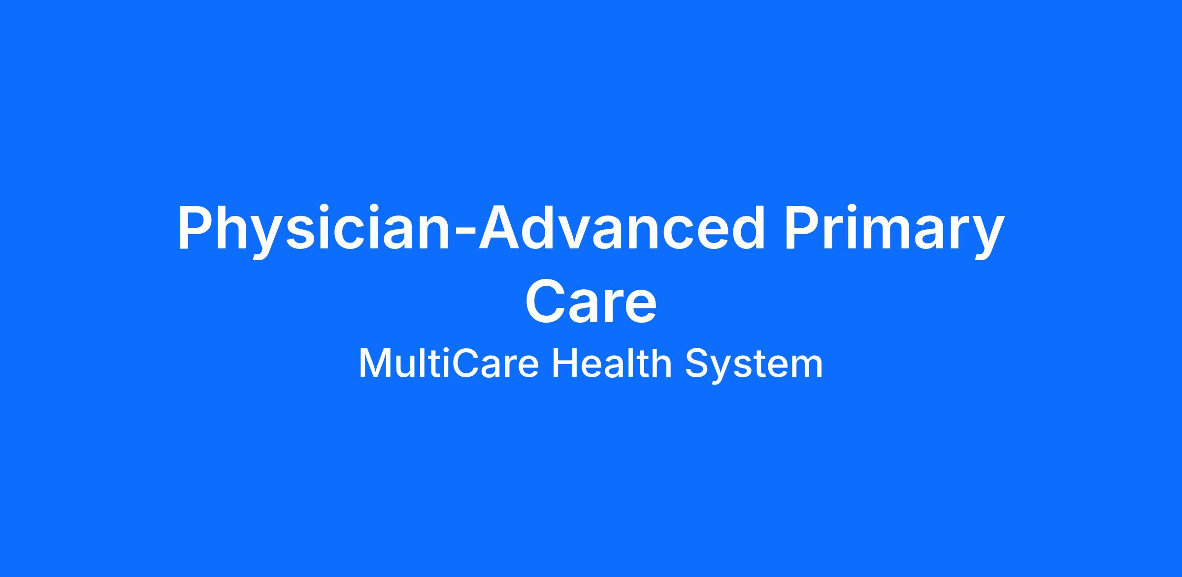 MultiCare Health System is seeking a BC/BE Advanced Primary Care Physician to join our well-established, thriving and comprehensive practice. Providers at MultiCare are recognized as being among the best in the Northwest Region. Here, you’ll find everything you need to excel in your job including outstanding facilities, comprehensive resources and talented teammates in partnering for healing and a healthy future.Requirements