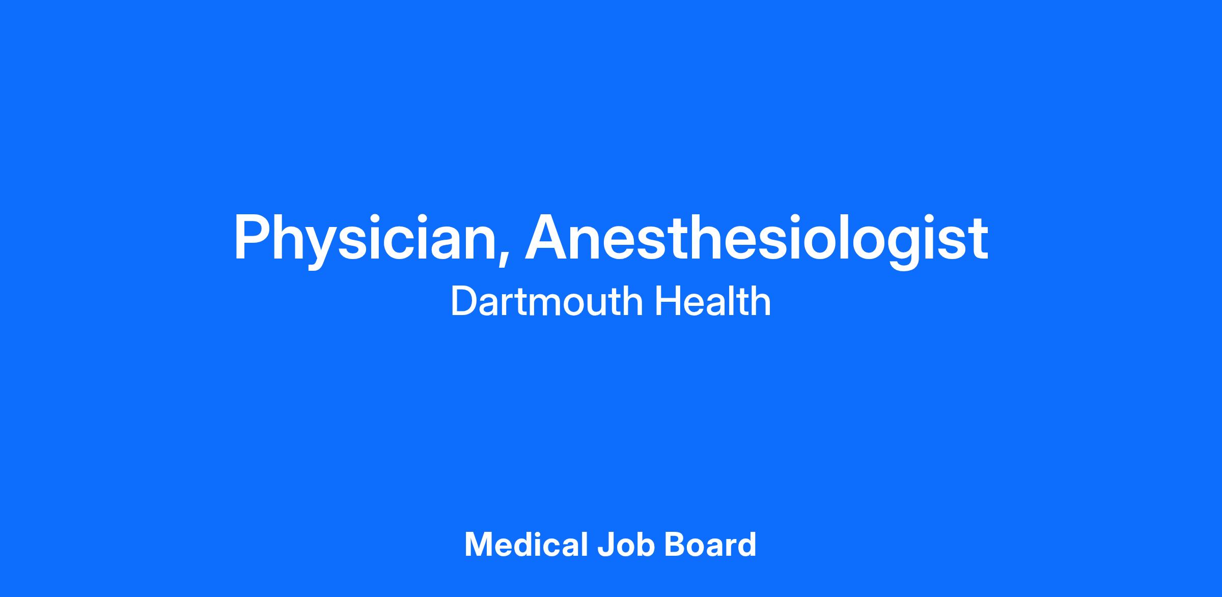 Southwestern Vermont Medical Center (SVMC), a member hospital of Dartmouth Health, is seeking a Board Certified / Board Eligible Anesthesiologist to join a team of established anesthesiologists and anesthesiologist assistants.