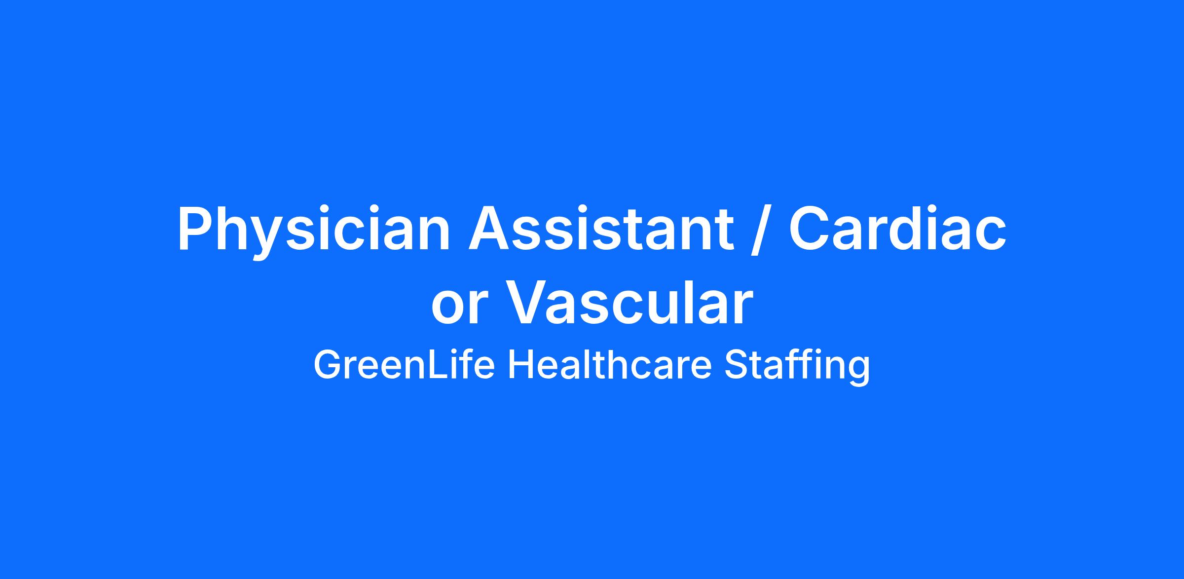 Physician Assistant / Cardiac or Vascular - Bronx, NY (#3338)