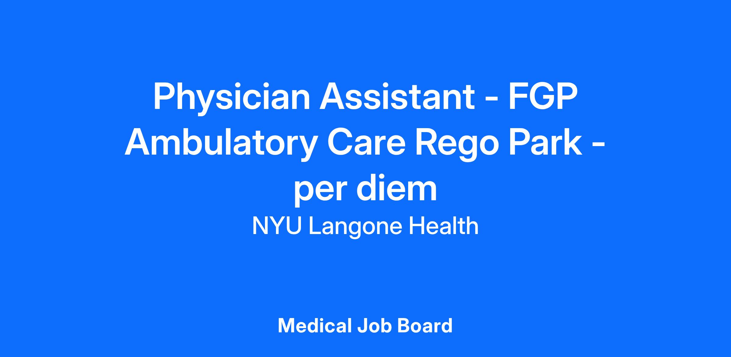 We have an exciting opportunity to join our team as a Physician Assistant - FGP Ambulatory Care Rego Park - per diem.
