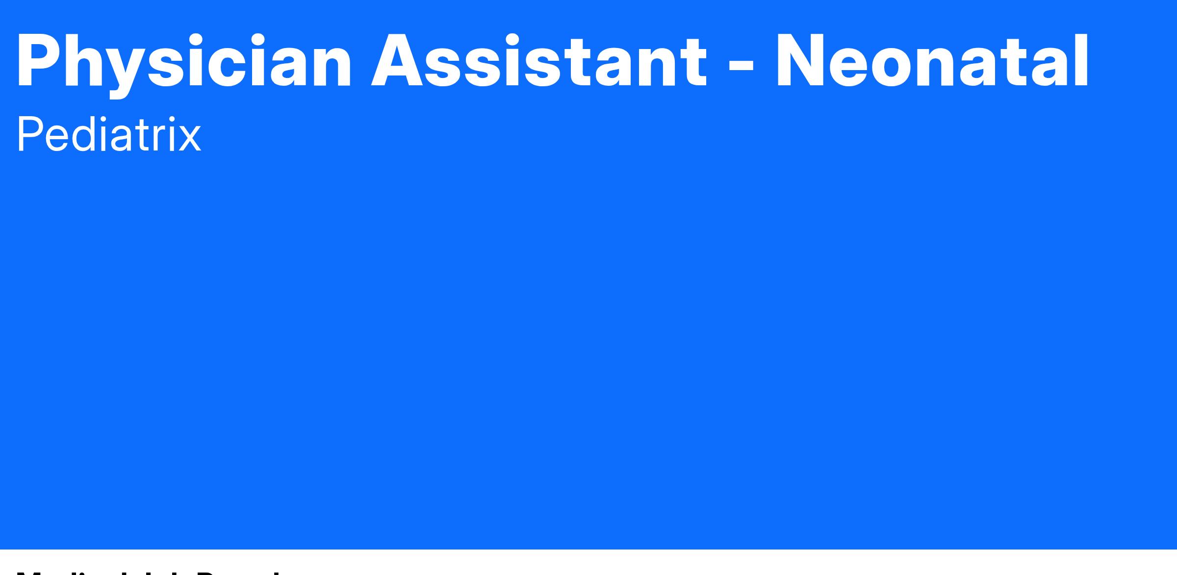 Please Note: Fraudulent job postings/job scams are becoming increasingly common. All genuine Pediatrix job postings can be found through the Pediatrix Careers site: www.pediatrix.com/careers.