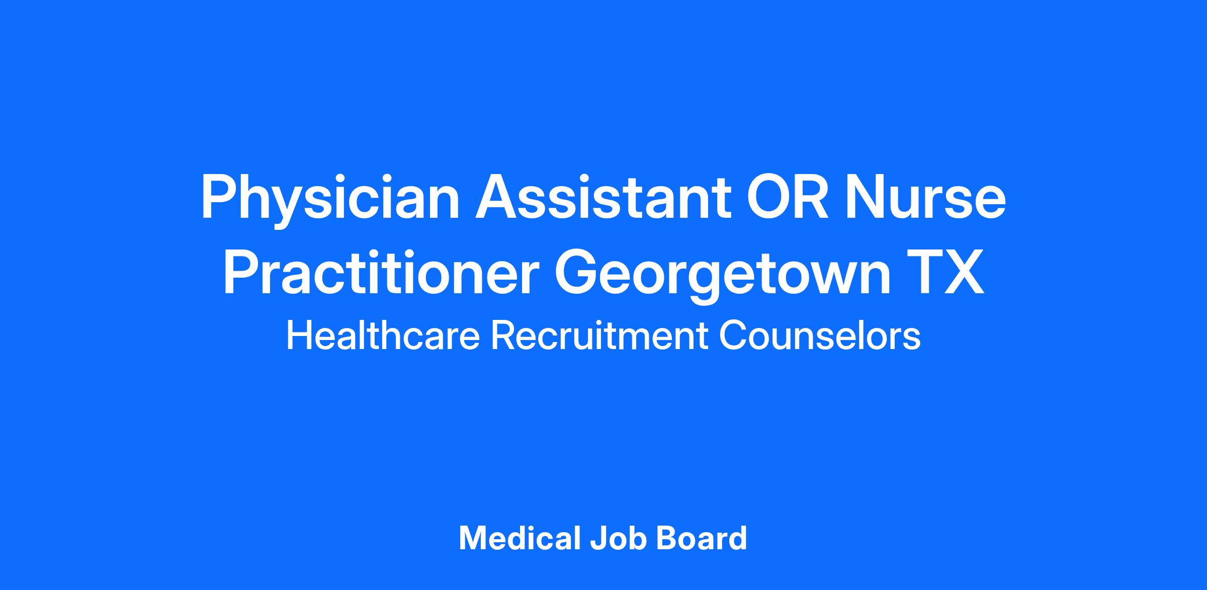 Physician Assistant OR Nurse Practitioner Georgetown TX (30 min N of Austin) Urgently Hiring $120k to $130k