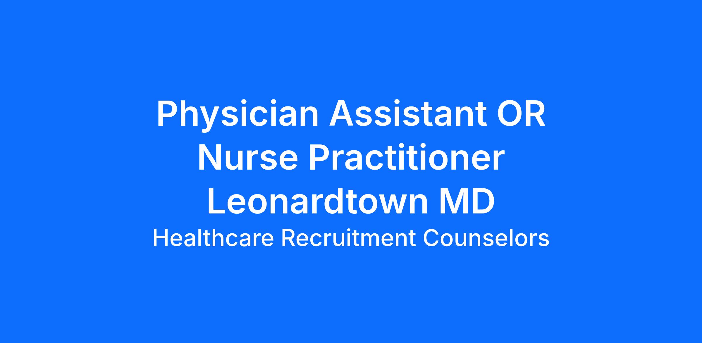 Physician Assistant OR Nurse Practitioner Leonardtown MD $155k-$180k | No nights or Weekends We are looking for a Physician Assistant or Nurse Practitioner to join our award-winning interventional pain management practice full time (Mon-Friday) in Leonardtown with 1 day per week coverage at our office in Prince Frederick. Ideally, we are seeking a provider who has experience with pain management and/or orthopedics and is within an easily commutable distance from our office. About us: Our providers offer treatment options customized to each patient. We fully recognize that patients experience pain differently and require a variety of therapeutic approaches to restore functionality. Our broad services include, but are not limited to, advanced interventional pain management procedures and medication management. Top surgeons in the Baltimore/Washington region rely on our expertise to ensure their patients receive stellar, seamless, comprehensive care.