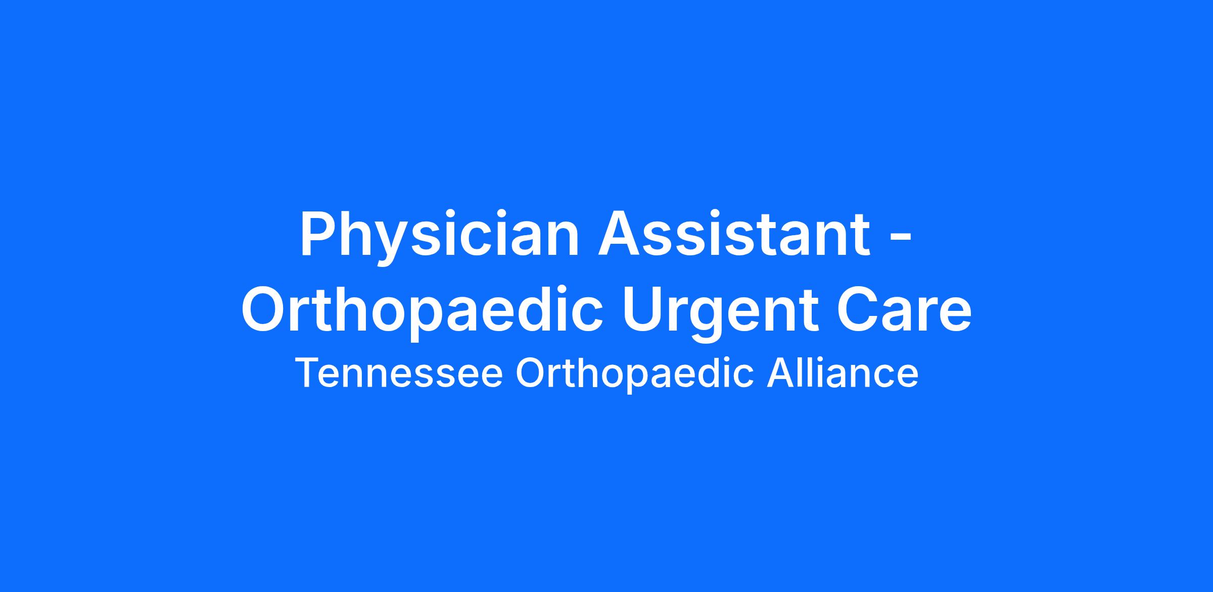This Physician Assistant position is dedicated to our Ortho Urgent Care facility in the Smyrna Clinic. As such, the schedule will include expanded hours to for daytime, evening, and/or weekend staffing.