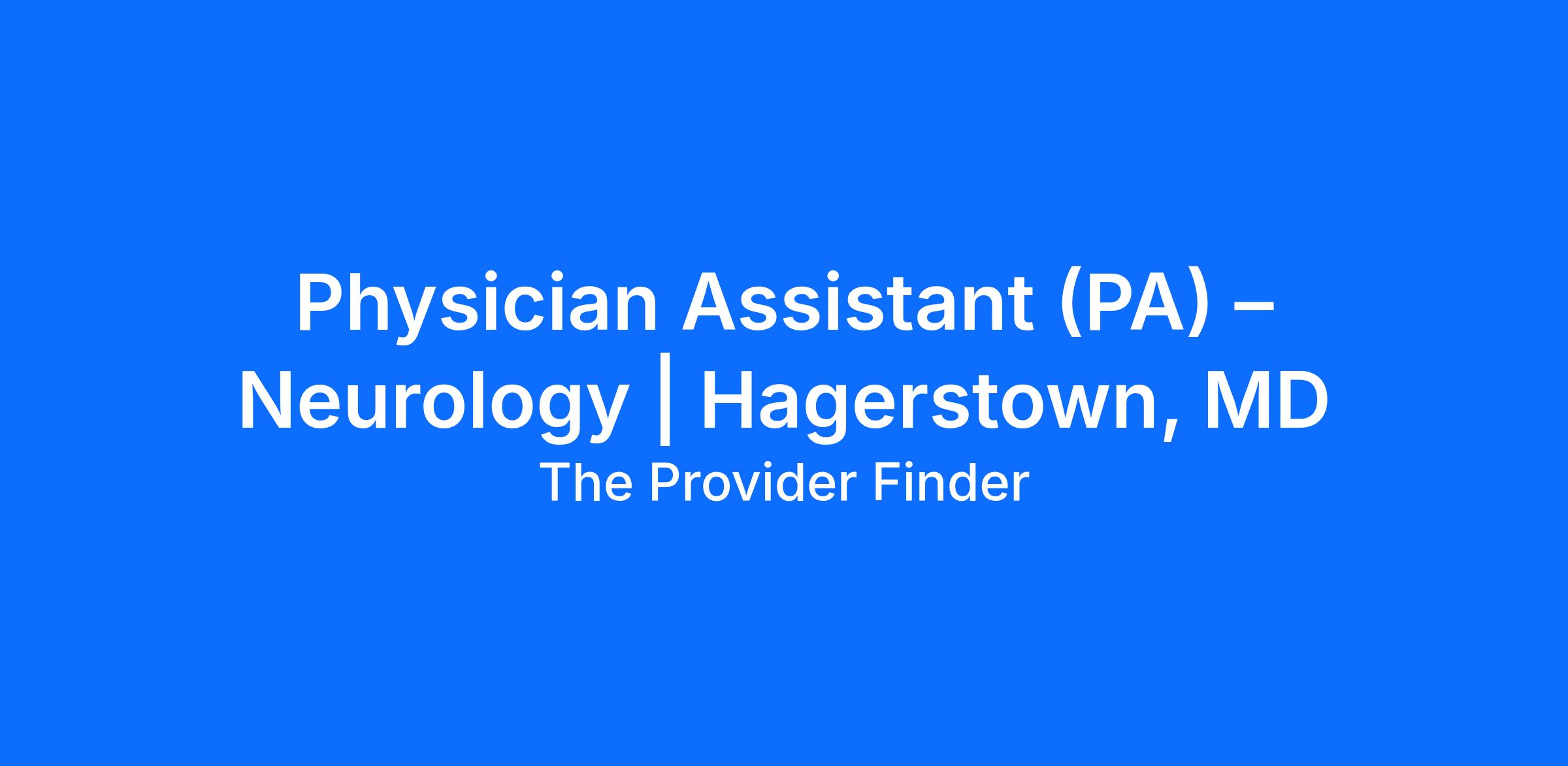 We are actively seeking a Physician Assistant (PA) to join a reputable Neurology practice serving patients in both Frederick and Hagerstown, Maryland.