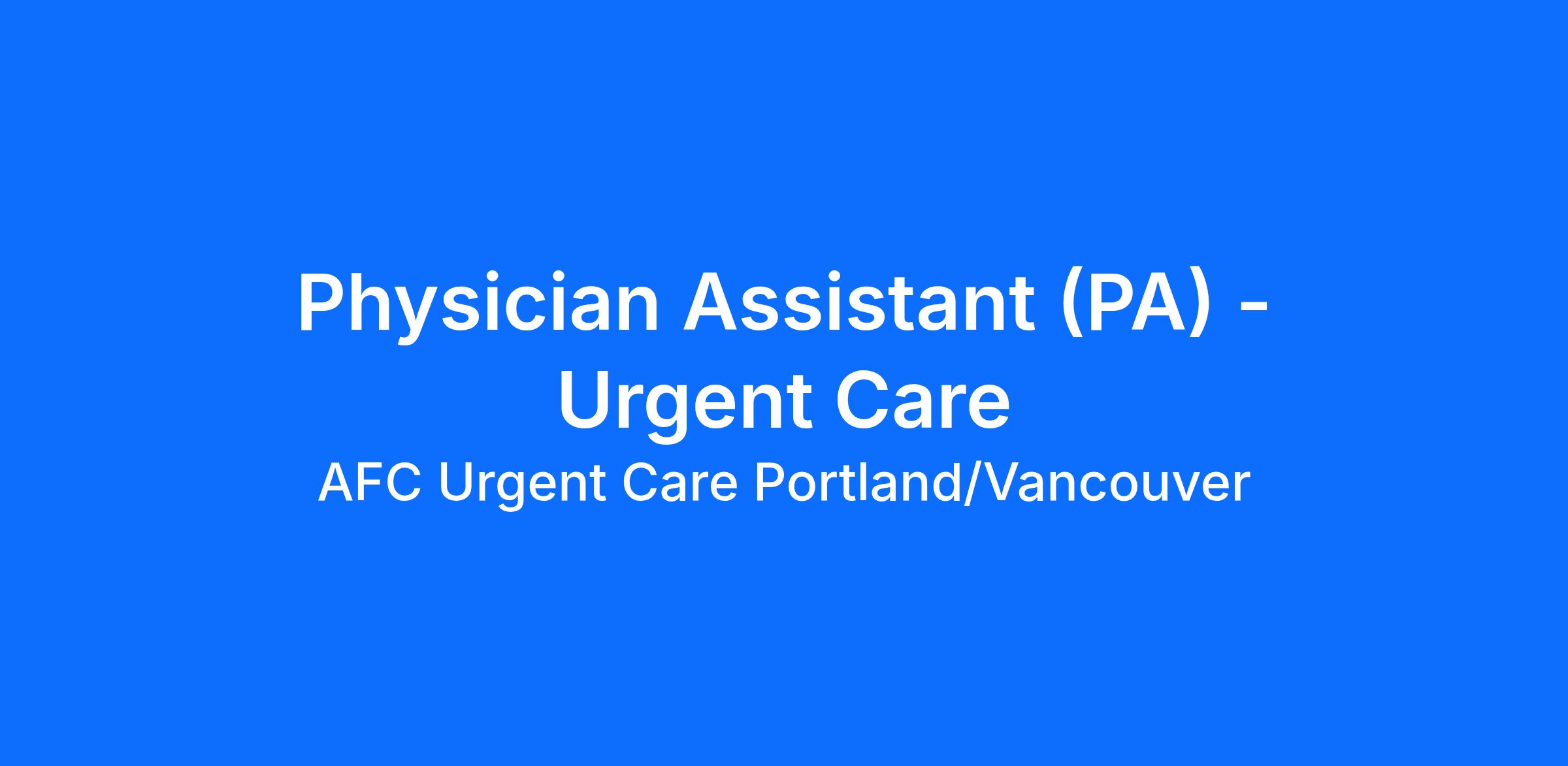 We're seeking passionate and skilled Physician Assistants (PA) to join our growing family. If you're looking for a role that offers professional growth, a supportive environment, and a healthy dose of fun, AFC Portland/Vancouver is the place for you!