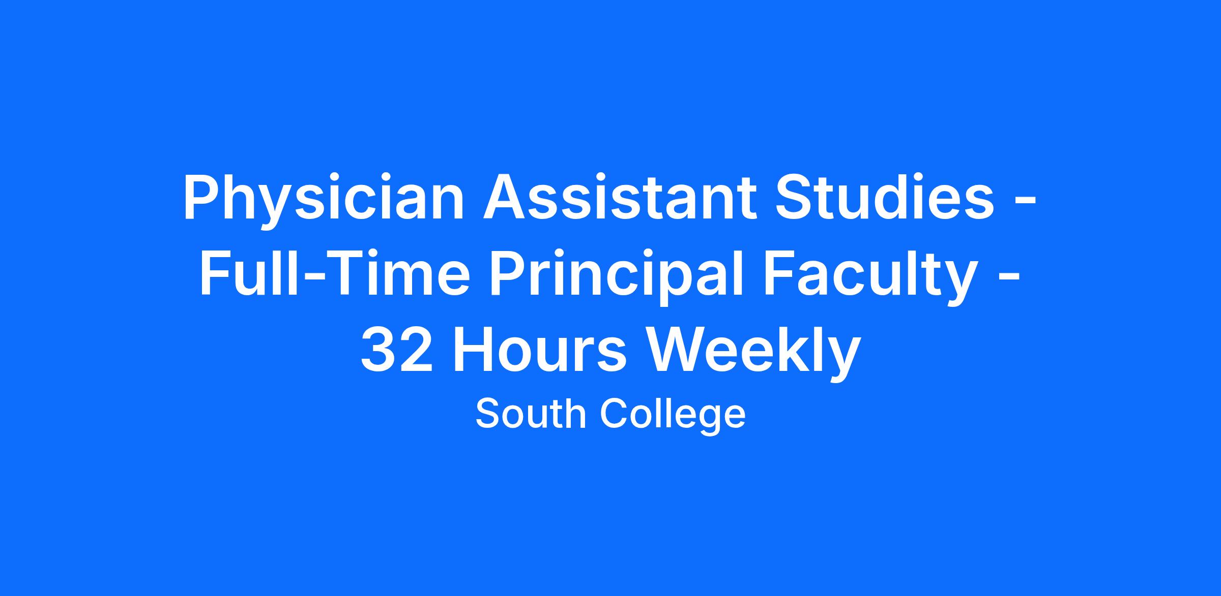 The Orlando campus of the South College Physician Assistant Studies program is seeking highly motivated, team-oriented individuals to join its experienced team of didactic faculty. The PA program offers a competitive salary and benefits package with ample opportunities for professional growth and development. The Program is proud to offer modern, new facilities with a robust simulation and ultrasound curriculum.