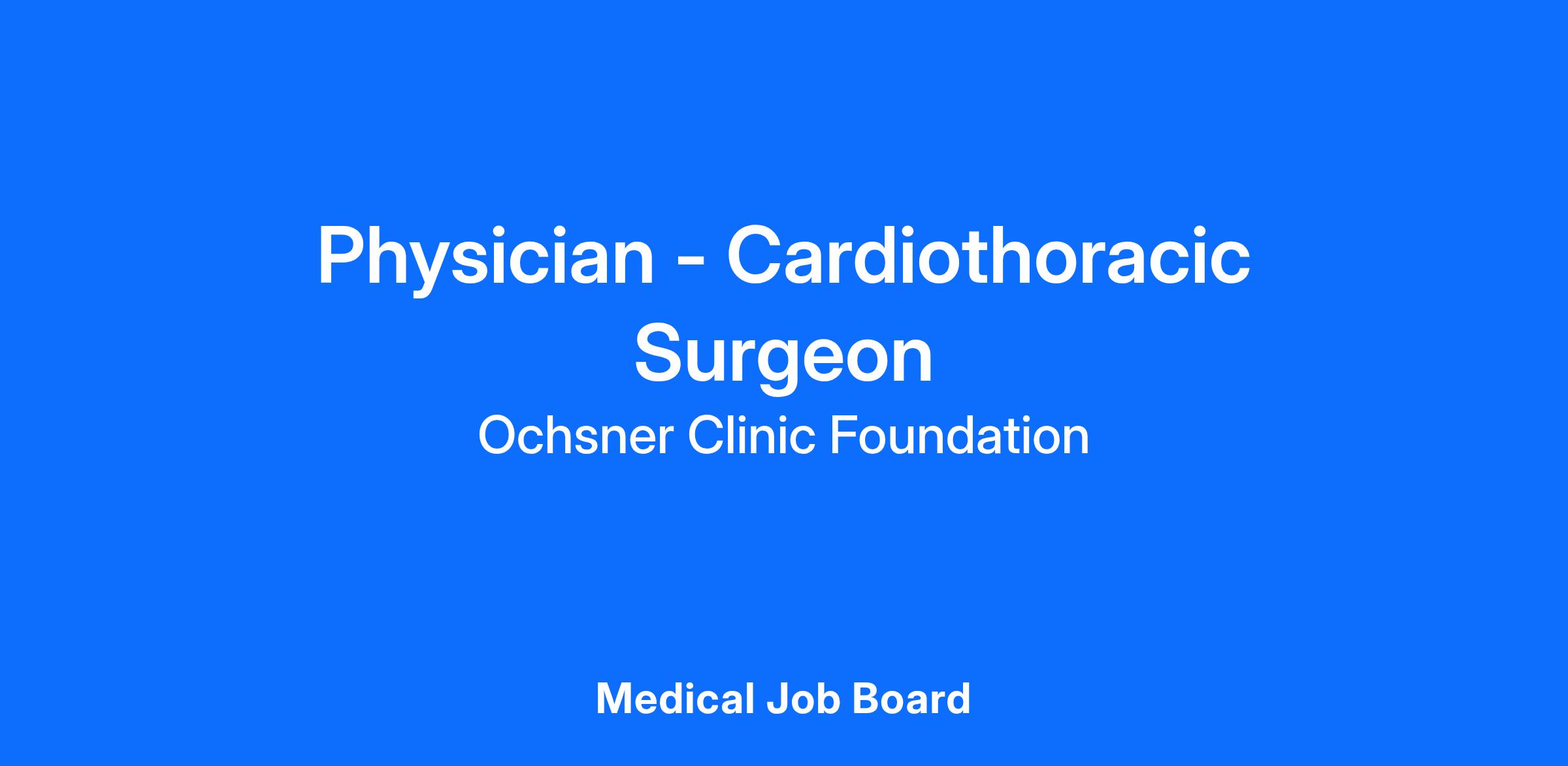 Ochsner Health is seeking a Board Certified/Board Eligible Cardiothoracic Surgeon to reestablish a Cardiothoracic surgical program. The new physician will join the hospital’s current cardiac service line of Interventional cardiology and vascular surgery as well as a vein and wound care center. Ochsner Health is an integrated healthcare system with more than 36,000 employees and over 4,600 employed and affiliated physicians in over 90 medical specialties and subspecialties. It operates 47 hospitals and more than 370 health and urgent care centers across Louisiana, Mississippi, Alabama and the Southeastern United States.