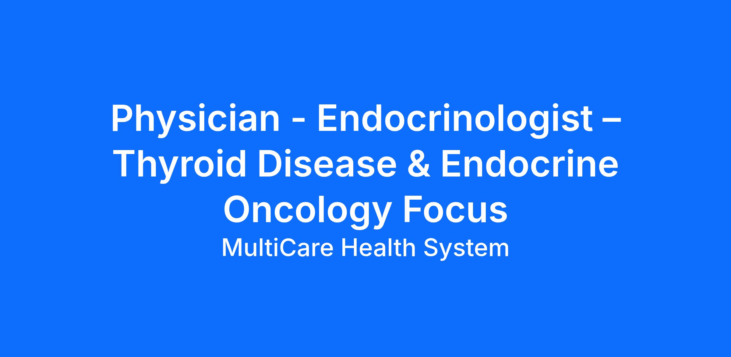 Multicare Endocrine Specialists is seeking a dedicated expert in thyroid disease and endocrine oncology to help lead the development of a world-class thyroid program within a dynamic, cross-collaborative health system. This position offers a unique opportunity to work closely with our cancer institute, endocrine surgeons, and multidisciplinary teams to advance the diagnosis and management of thyroid nodules, thyroid cancer, and complex endocrinopathies. Ideal candidates will bring clinical expertise, a spirit of collaboration, and passion for building high-impact, patient-centered programs that elevate the standard of care across the health system.