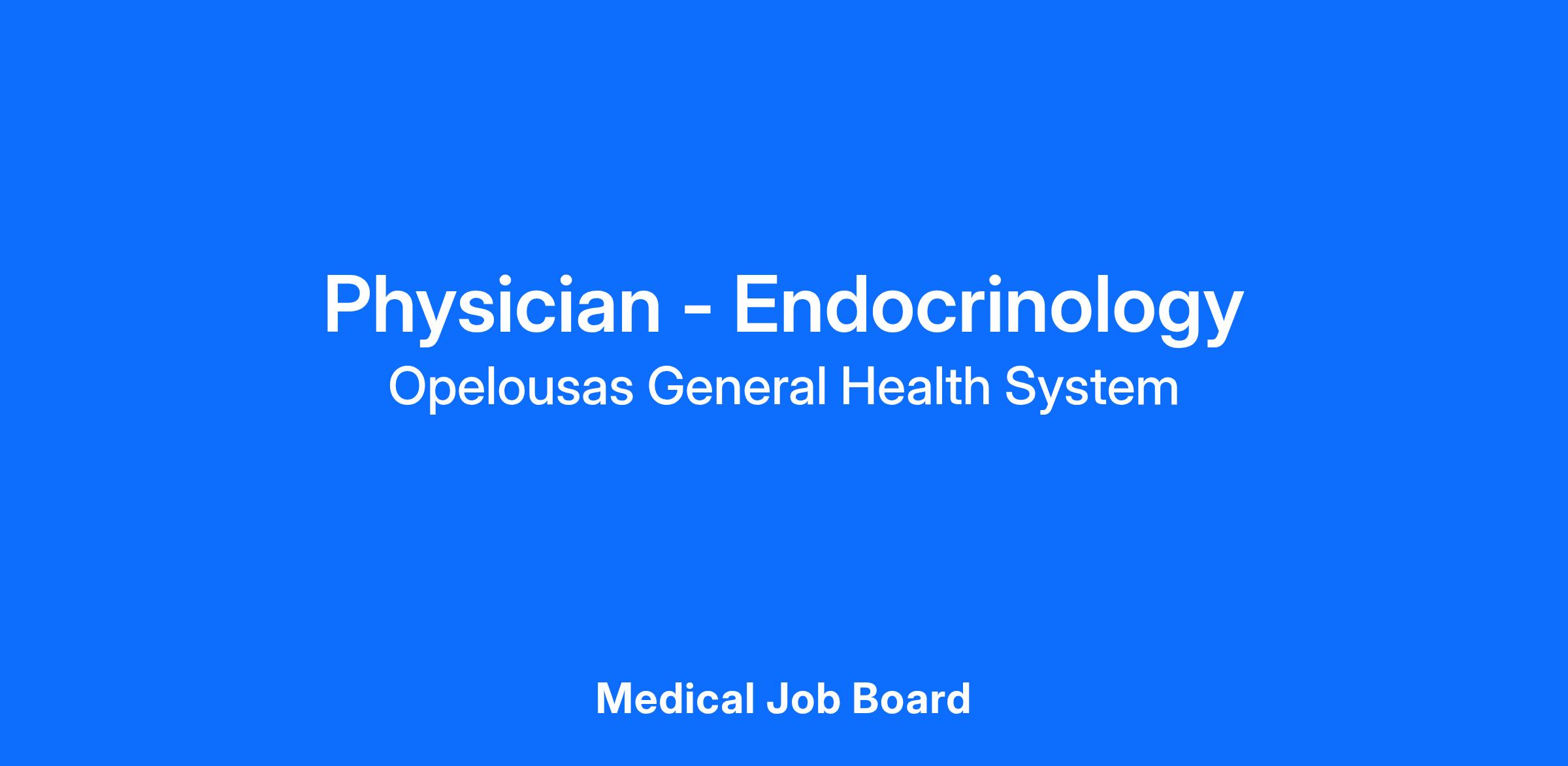 Opelousas General Health System is seeking a dedicated full-time Endocrinologist to join our skilled team! Residents/Fellows are encouraged to apply!