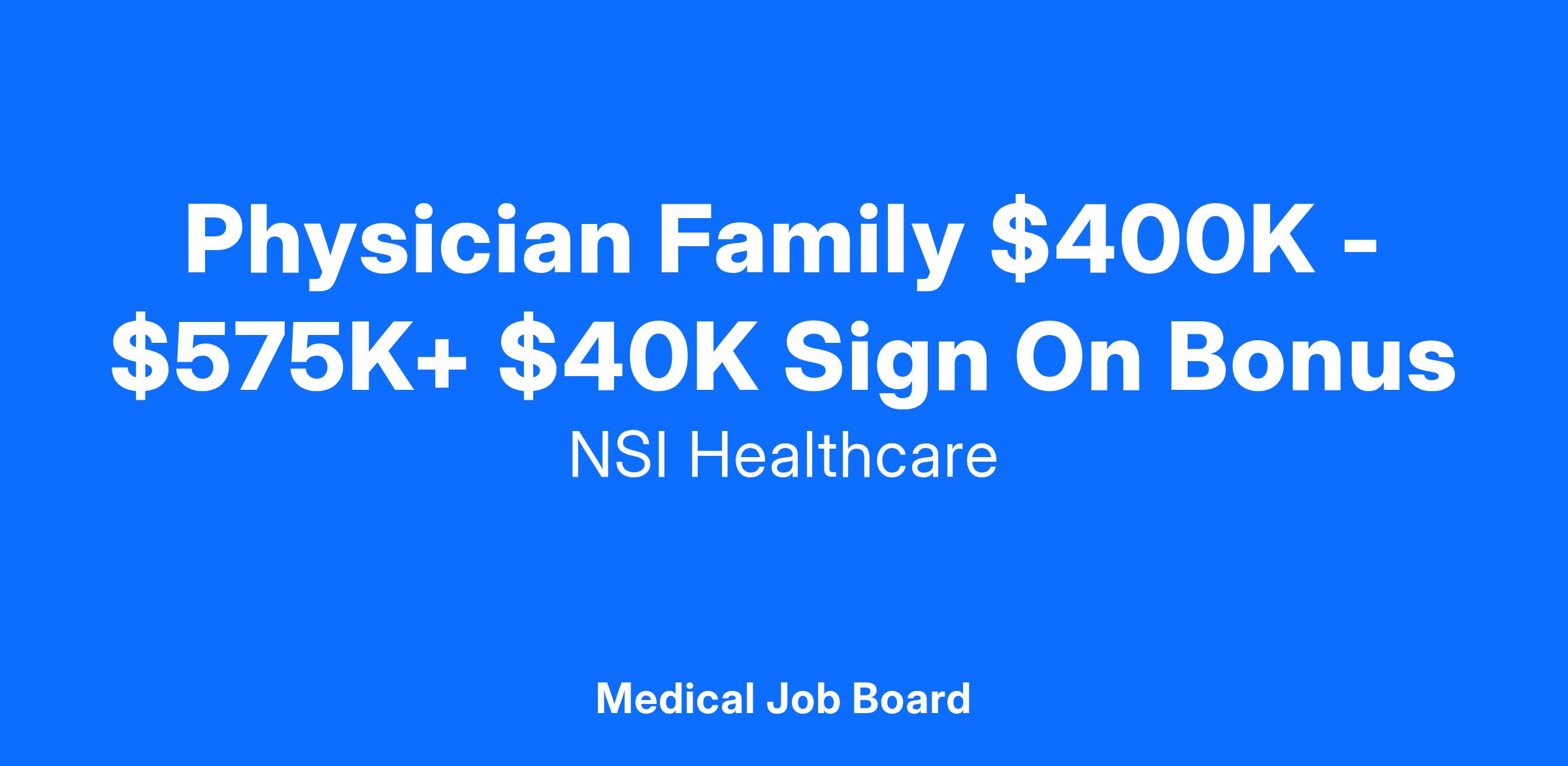 Physician Family $400K - $575K+ $40K Sign On Bonus