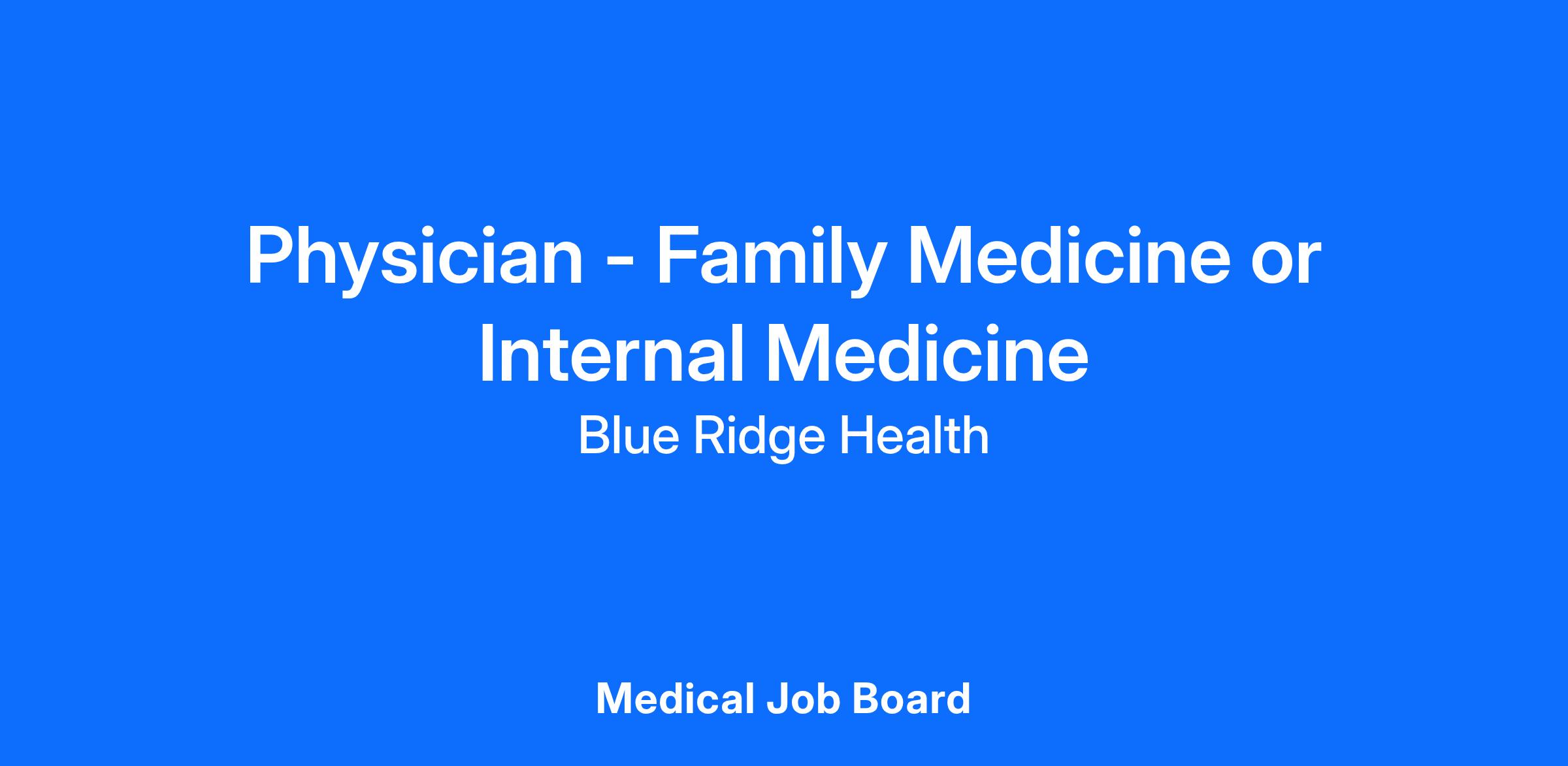 Blue Ridge Health (BRH) is recruiting for community-minded medical providers to join our team.