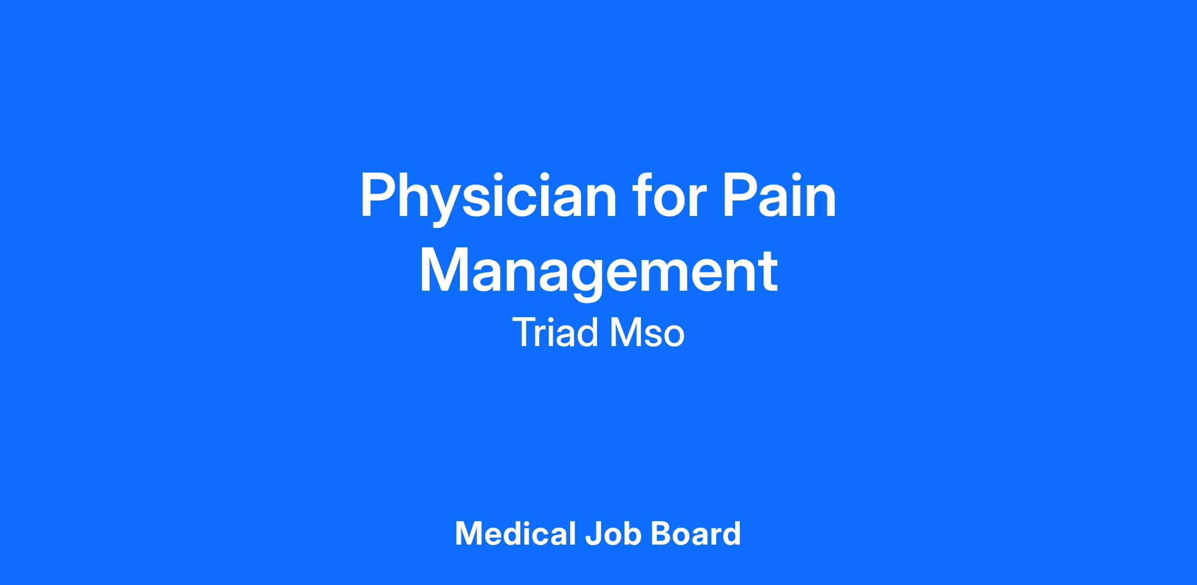 | Triad Complete Healthcare is looking for a caring, personable, and skilled Physician interested in pain management practice in Stillwater, Ok. You will see new patients and collaborate with our medical director, mid-level provider, and clinical pharmacist to optimize care and establish a polymodal pain regimen in patients with chronic pain. We are willing to work with your schedule. Medical Director opportunity available. We will support you and provide a stable environment for you to render the best patient care possible. Physician will be responsible for pain management patients. The pain management practice is extremely conservative, and physician will be expected to practice according to guidelines regarding Best Practices. Our management services group provides a higher level of support without opting to control wide aspects of your practice. At Triad Complete Healthcare, our role is to support you, the physician, to ensure the best patient outcomes possible, while providing the patient with a pleasant and empathetic atmosphere. Qualifications and Education Requirements