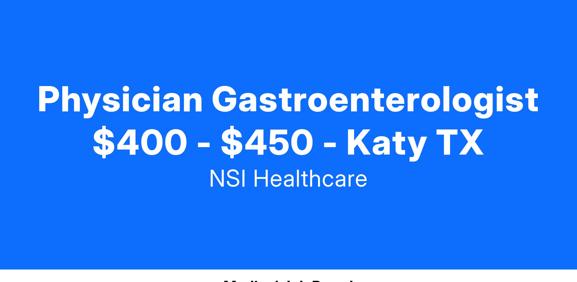 Physician Gastroenterologist $400 - $450 - Katy TX