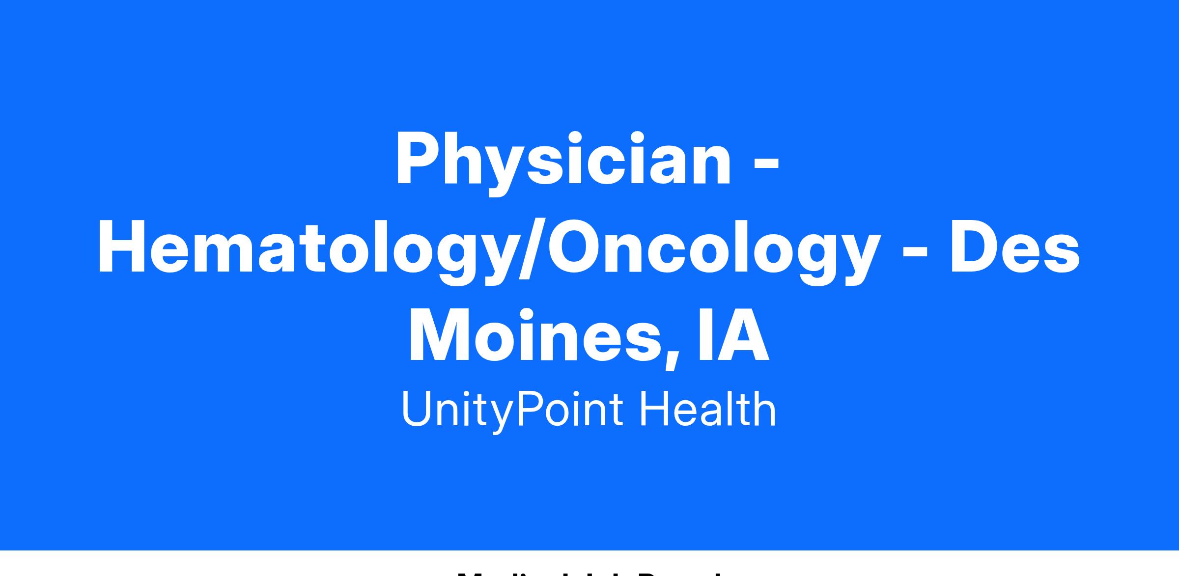 UnityPoint Health is actively recruiting Adult Hematology/Oncology services in Central Iowa