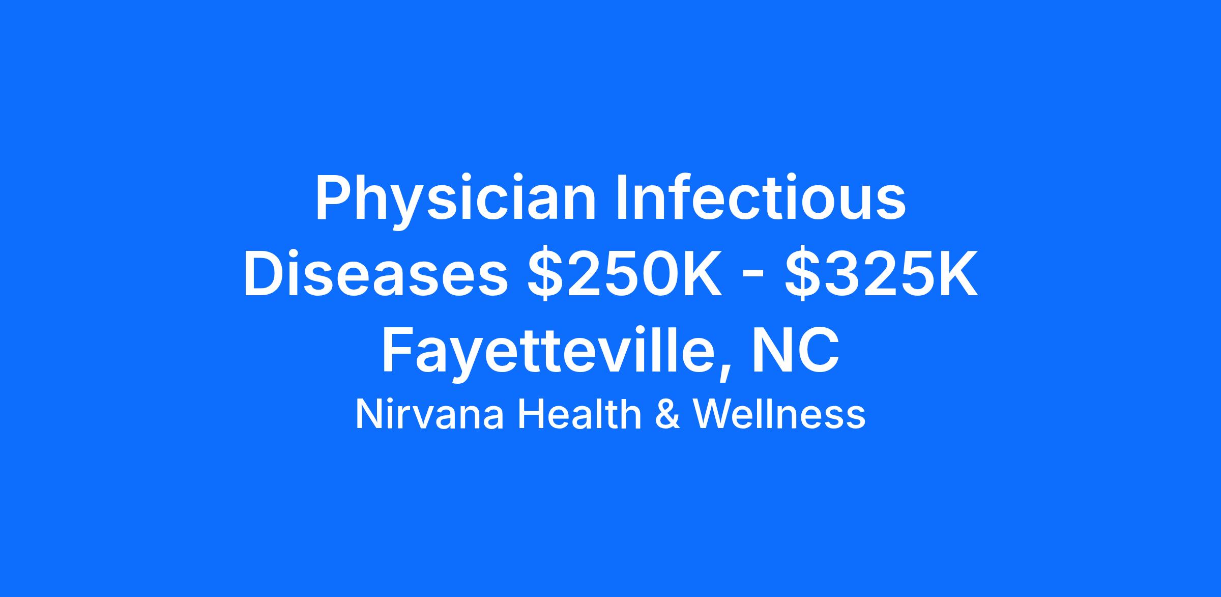 Physician Infectious Diseases $250K - $325K, Fayetteville, NC