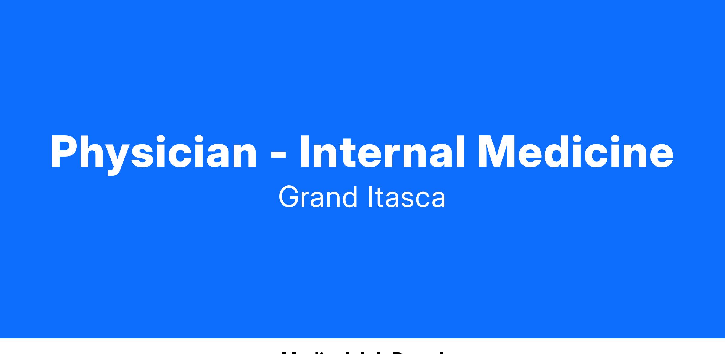 Grand Itasca Clinic & Hospital in Grand Rapids, Minnesota, is looking for a Board Certified or Board Eligible Internal Medicine Physician to join its busy and growing Internal Medicine department.