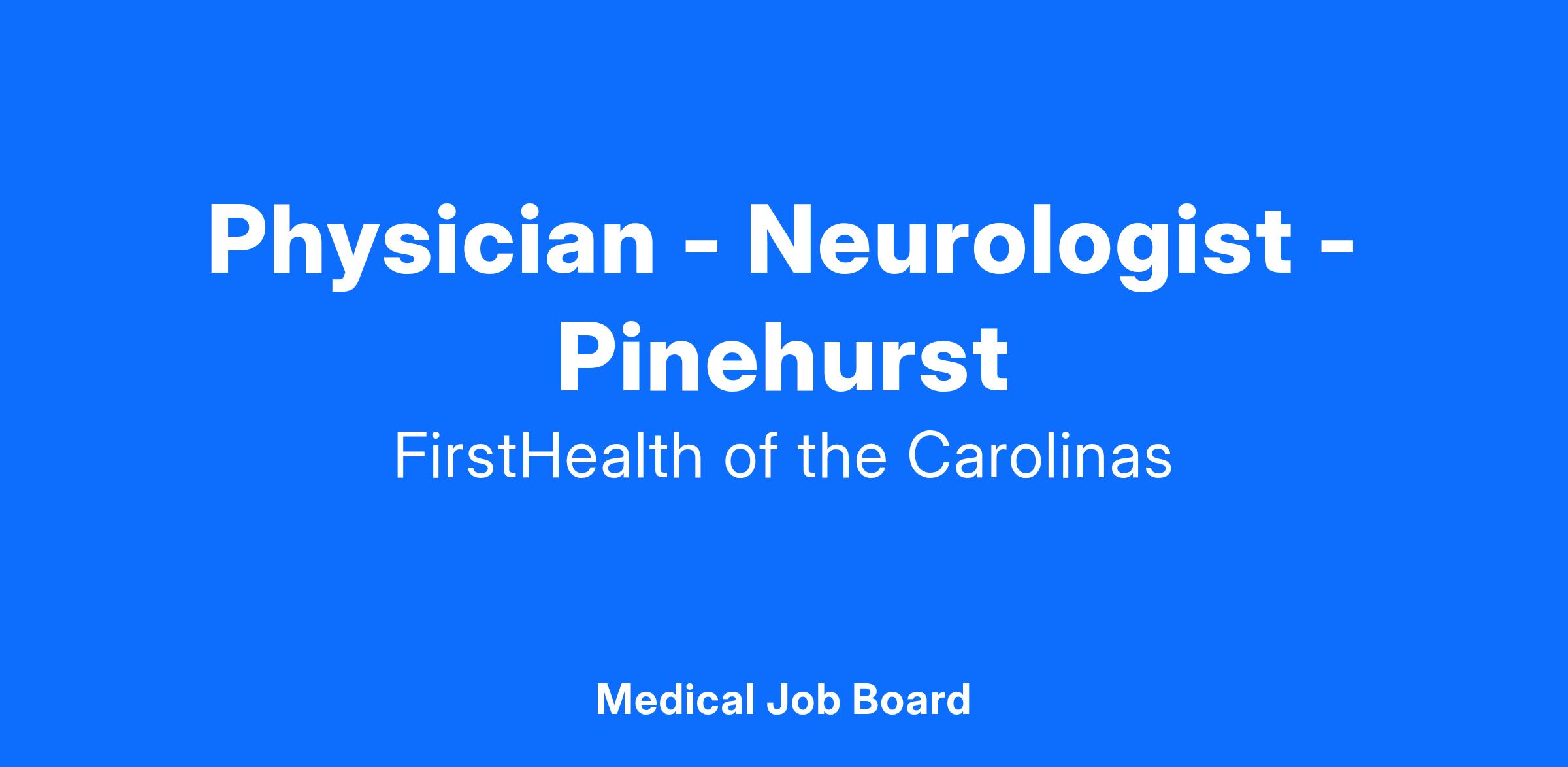 FirstHealth of the Carolinas Neuroscience service line is expanding. Our hospital-employed team of Neurologists invites a motivated Physician to help grow our established program. We are a private, not-for-profit health care network based in Pinehurst, NC, serving 15 counties in the mid-Carolinas. FirstHealth is nationally recognized as a top 150 place to work in health care by Becker’s Healthcare for two years in a row. Our organizational culture is guided by a commitment to patient safety, quality, and performance excellence.