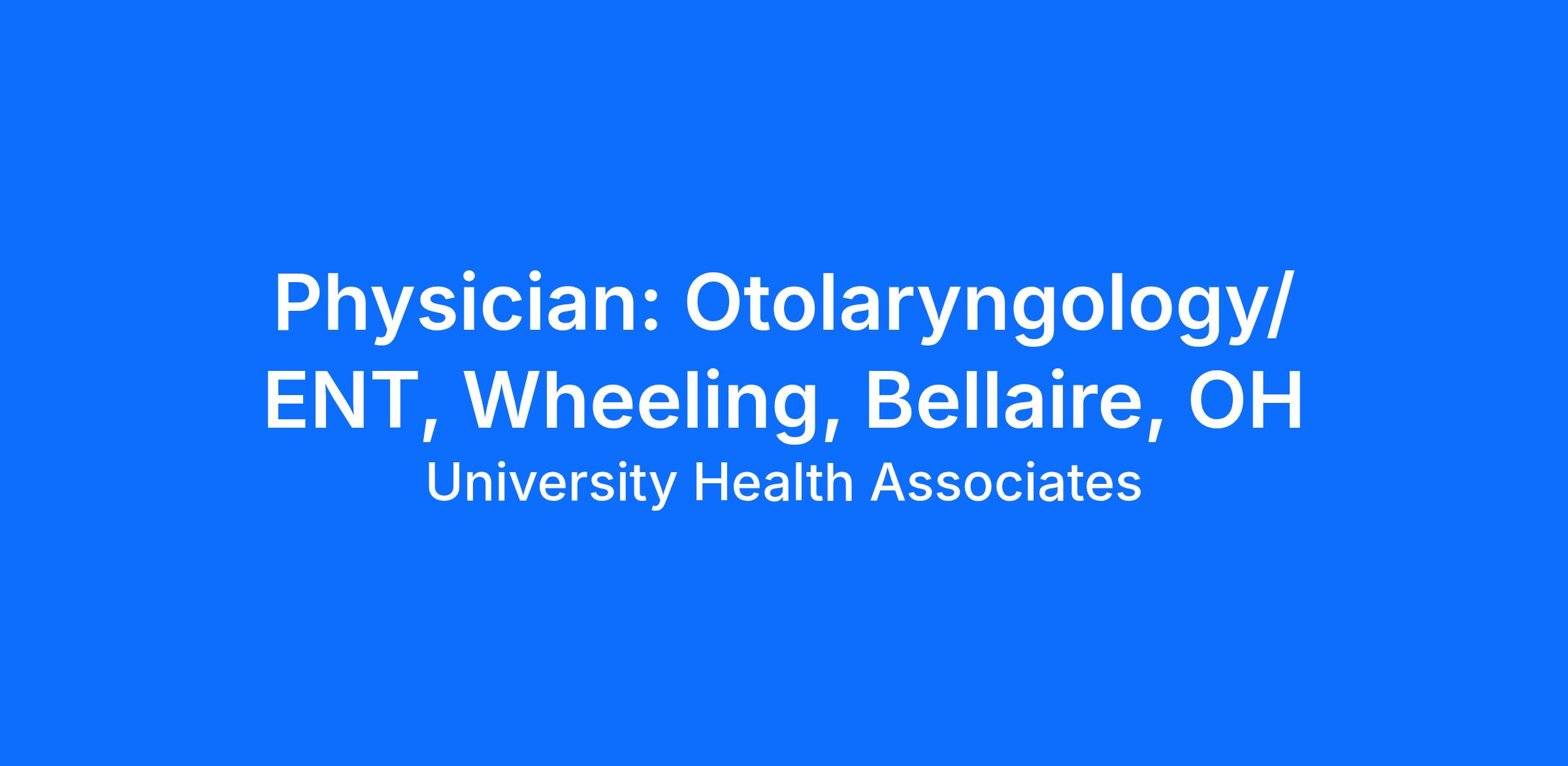 WVUHS Medical Group seeks an Otolaryngologist. The successful candidate will be expected to practice in Wheeling, WV.