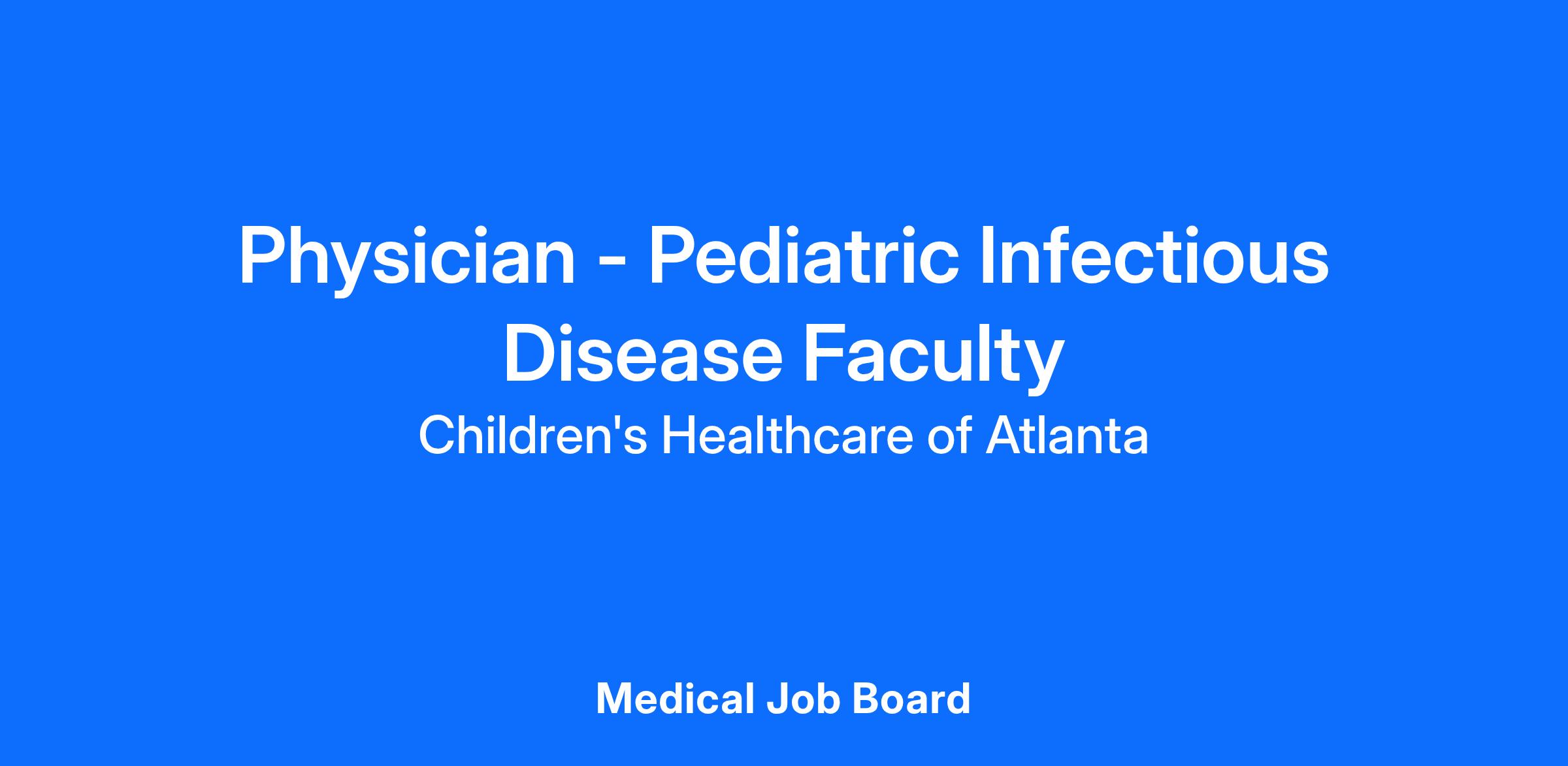 The Division of Pediatric Infectious Disease at Emory University School of Medicine and Children’s Healthcare of Atlanta are seeking a candidate to join our clinical faculty. The faculty member will contribute to the clinical, research, and teaching missions of the Division of Pediatric Infectious Diseases, Department of Pediatrics, and Children’s Healthcare of Atlanta. The primary responsibility of the candidate will be attending physician coverage of the inpatient and outpatient clinical services. Opportunities for involvement in inpatient and outpatient antimicrobial stewardship and transplant/immunocompromised patient care activities are available.