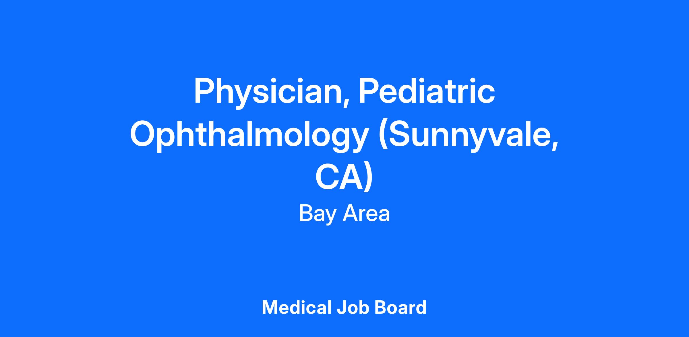 Palo Alto Foundation Medical Group (PAFMG) is seeking a full-time BC/BE Pediatric Ophthalmologist for our Sunnyvale location: