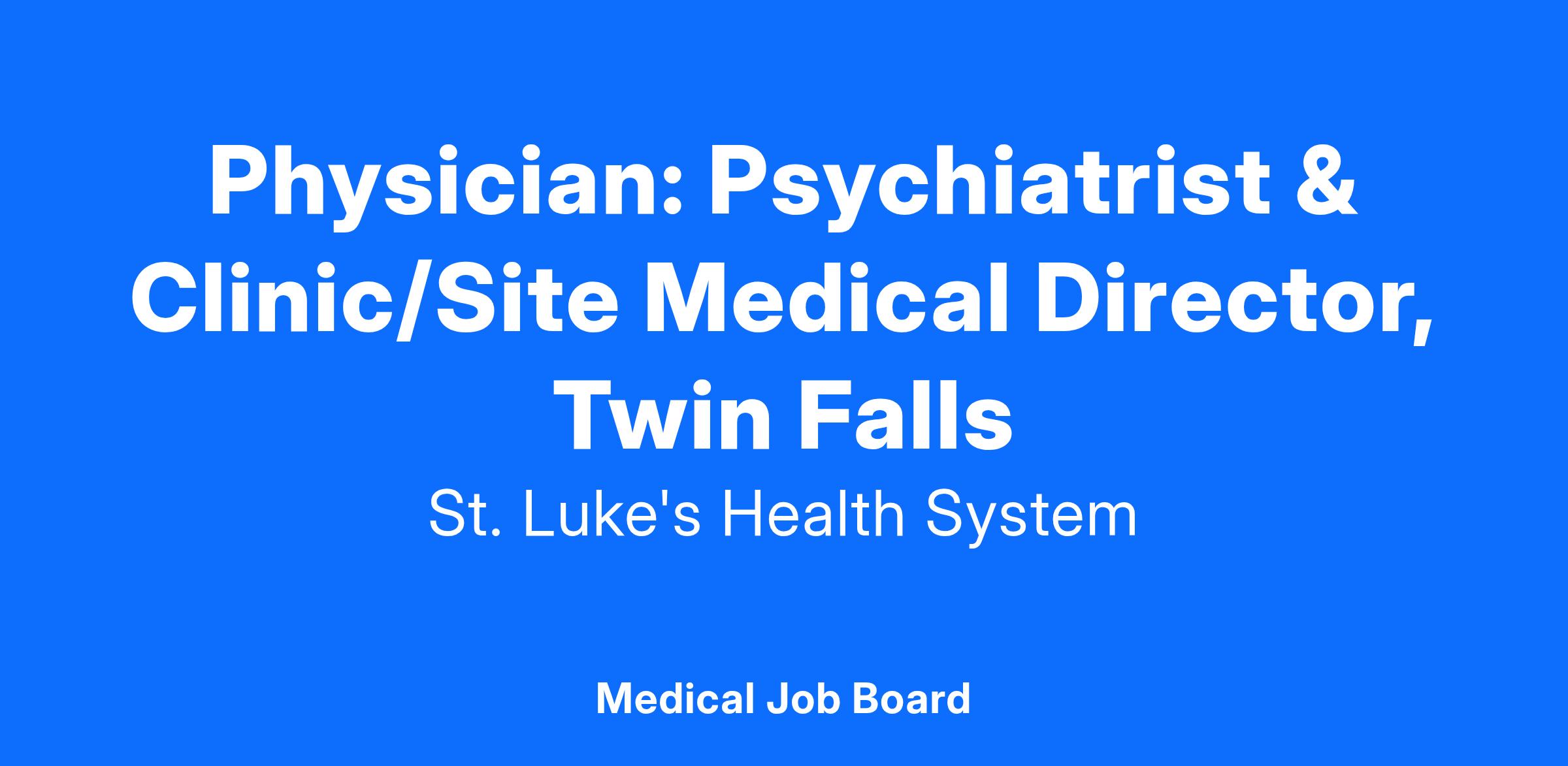 St. Luke's Behavioral Health seeks a full-time psychiatrist to support the leadership of clinical and operational efforts in our Magic Valley clinic. This position will work in close partnership with administration to positively impact the entire St. Luke's Health System. This role encompasses leading psychiatrists, advanced practice providers (APPs), working with psychotherapy and psychology colleagues, focusing on clinical operational performance, and collaborating with physician and APP leaders in other specialties across the health system.