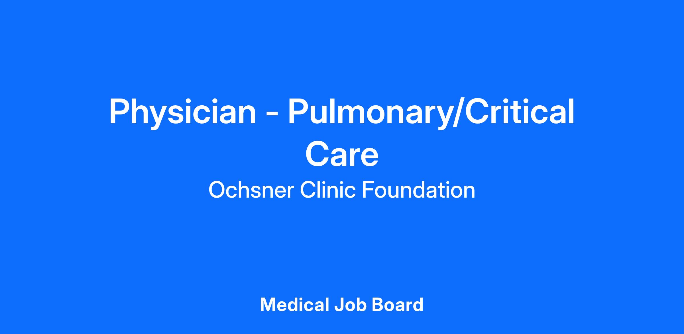 Ochsner Health is seeking a Board Certified/Board Eligible Pulmonary & Critical Care Physician to join our practice of 5 physicians and 3 APPs. Ochsner Medical Center – Northshore and Slidell Memorial Hospital are in a joint partnership allowing for two independent organizations to collaborate and offer better, more cost-effective healthcare for the region.