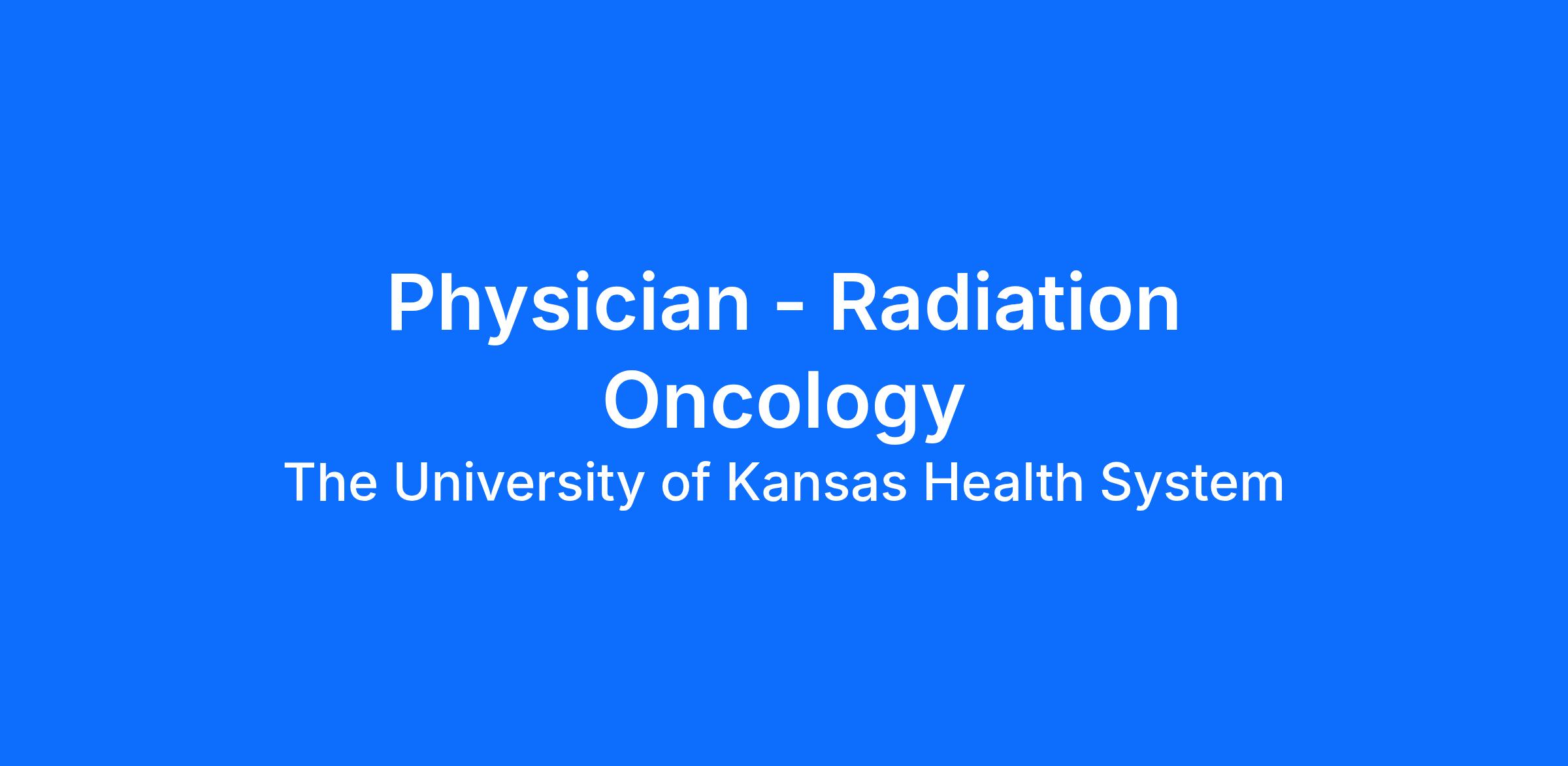 The Department of Radiation Oncology at the University of Kansas Cancer Center and The University of Kansas Health System is seeking an outstanding Radiation Oncologist to join our faculty at the Assistant Professor level.