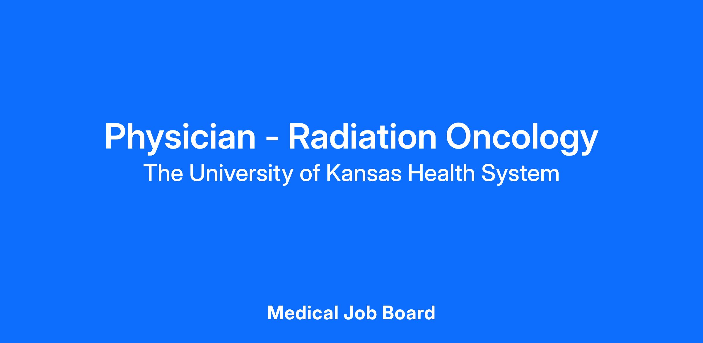 The Department of Radiation Oncology at the University of Kansas Cancer Center and The University of Kansas Health System is seeking an outstanding Radiation Oncologist to join our faculty at the Assistant Professor level. This position will be primarily located at The University of Kansas Health System community locations in the North Kansas City area.