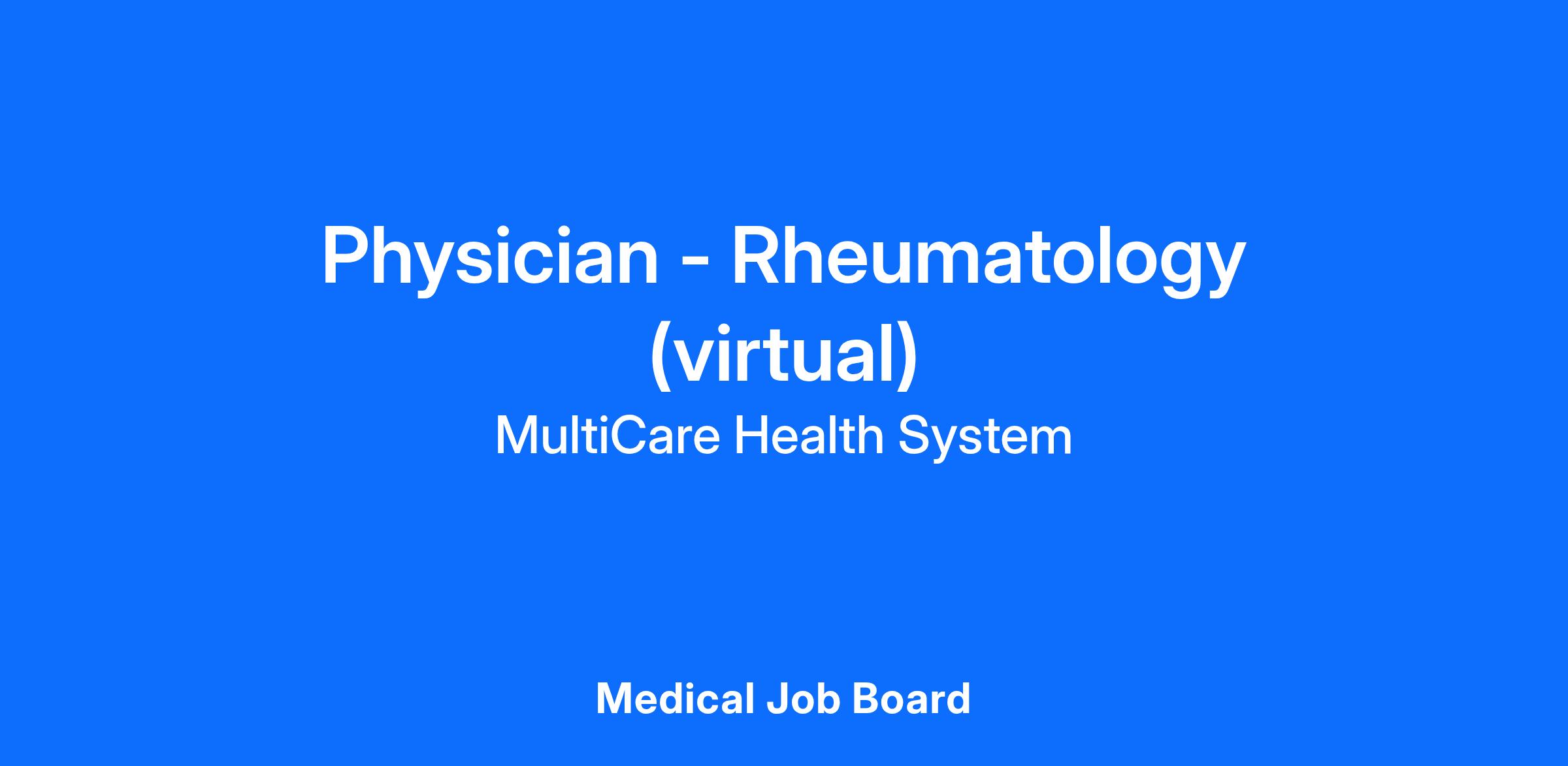 MultiCare Health System is seeking a BC/BE Rheumatologist to join our well-established, thriving and comprehensive practice. Providers at MultiCare are recognized as being among the best in the Northwest Region. Here, youβll find everything you need to excel in your job including outstanding facilities, comprehensive resources and talented teammates in partnering for healing and a healthy future.Requirements