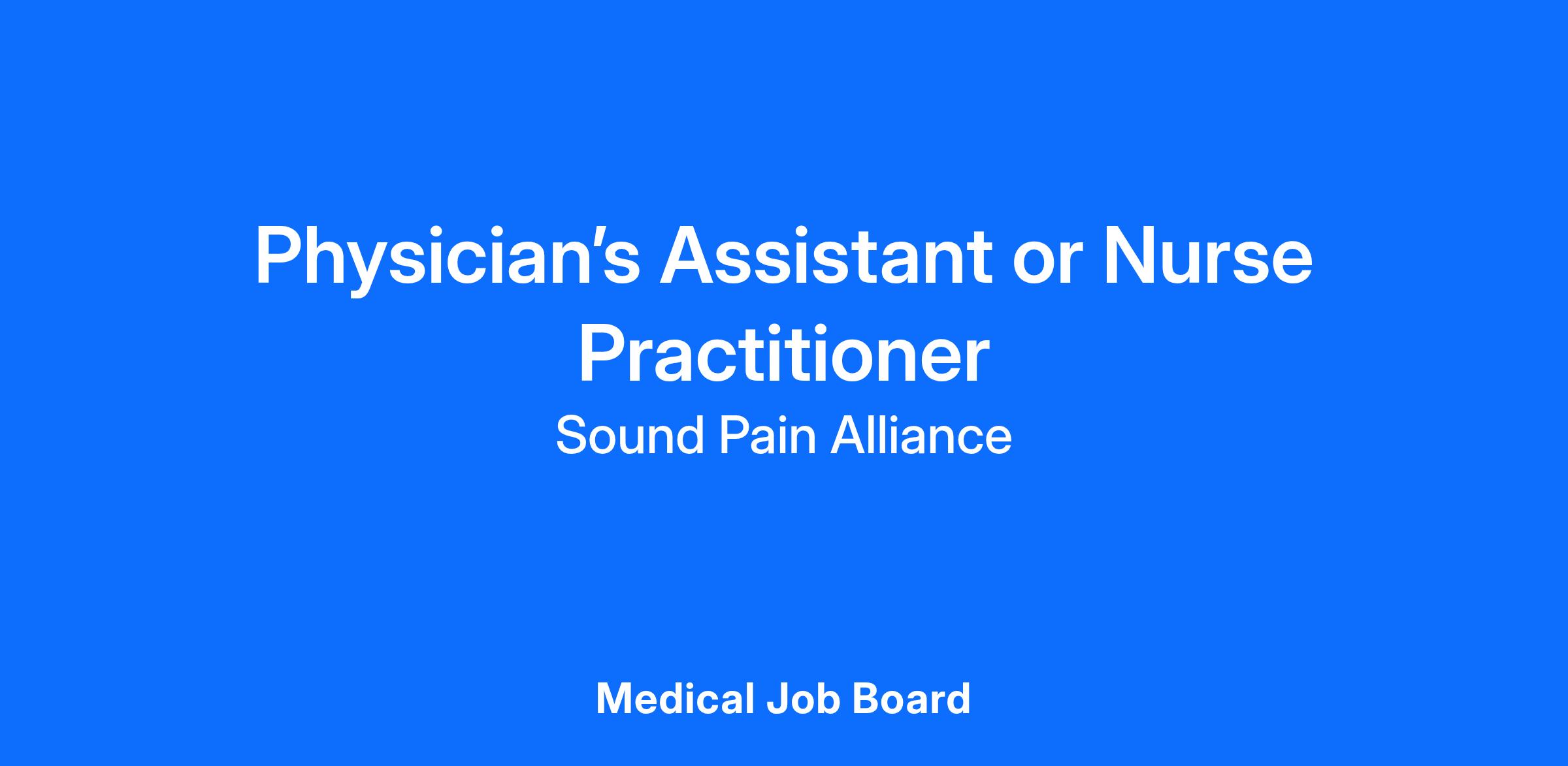 Please submit a resume and cover letter outlining your specific interest in our clinic. Qualified applicants will be contacted via email to arrange a phone interview with our practice administrator. For more information, visit our website at SoundPainAlliance.com.