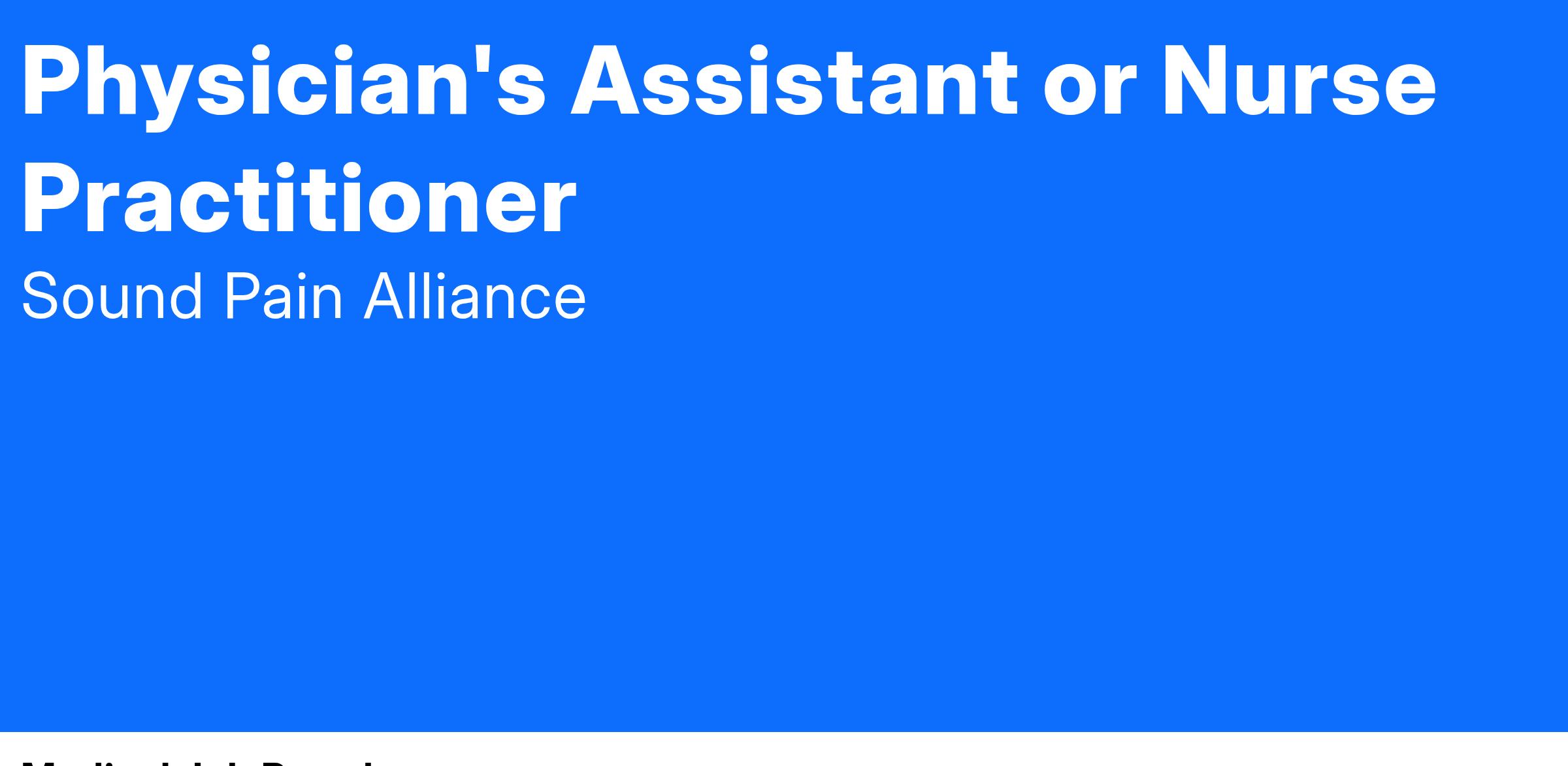 expanding our staff and we are currently looking for a Physician Assistant or Nurse Practitioner. As