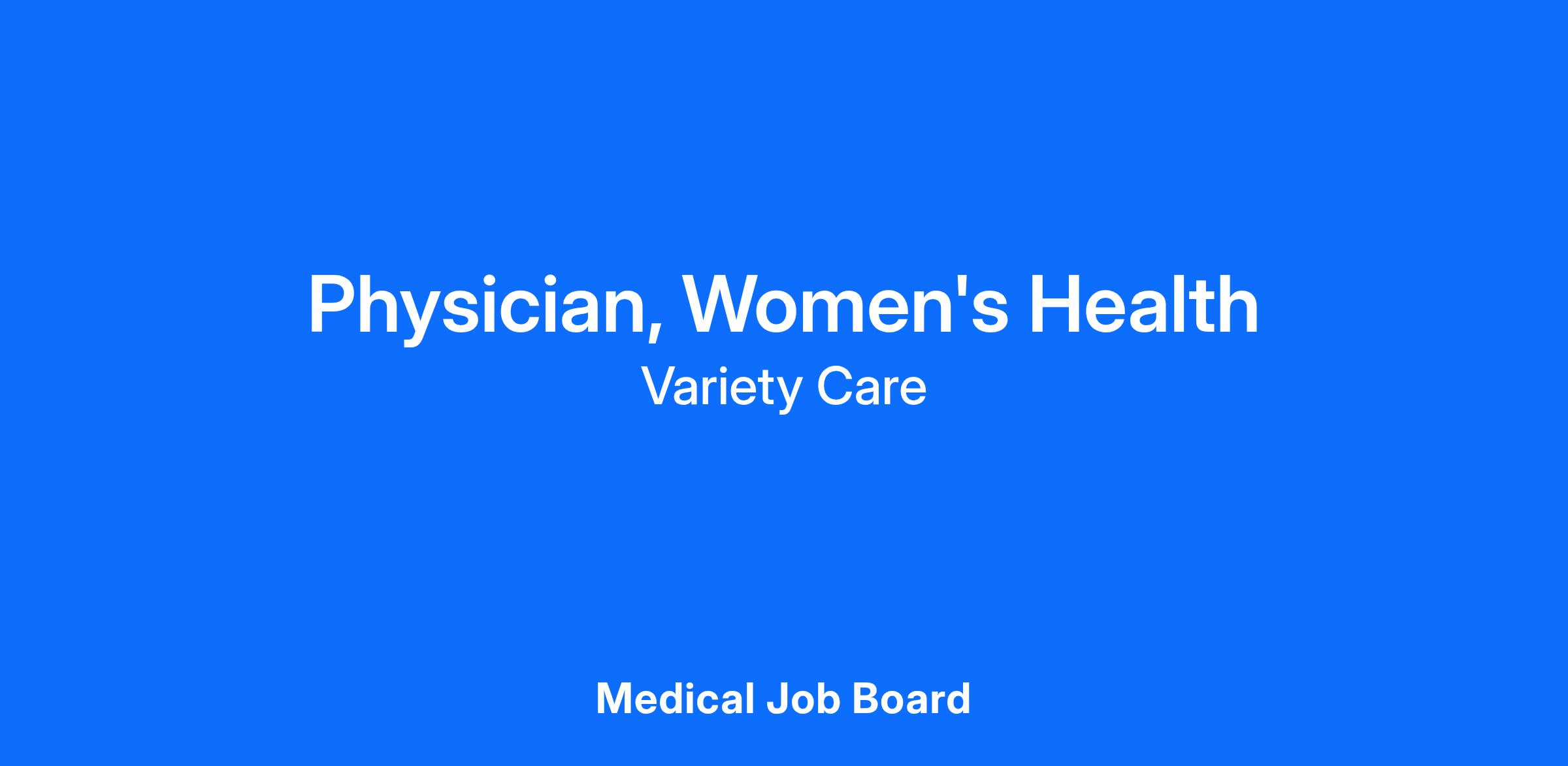 Physician (M.D. or D.O.) cares and addresses health care issues that are specific to women of all ages and are specially trained to provide care during pregnancy, childbirth, the postpartum period, and care of the newborn. Provides health care to the patients of VARIETY CARE, following the standards of the Oklahoma State Department of Health (OSDH) and at the direction of the Medical Director and/or Supervising Physician.