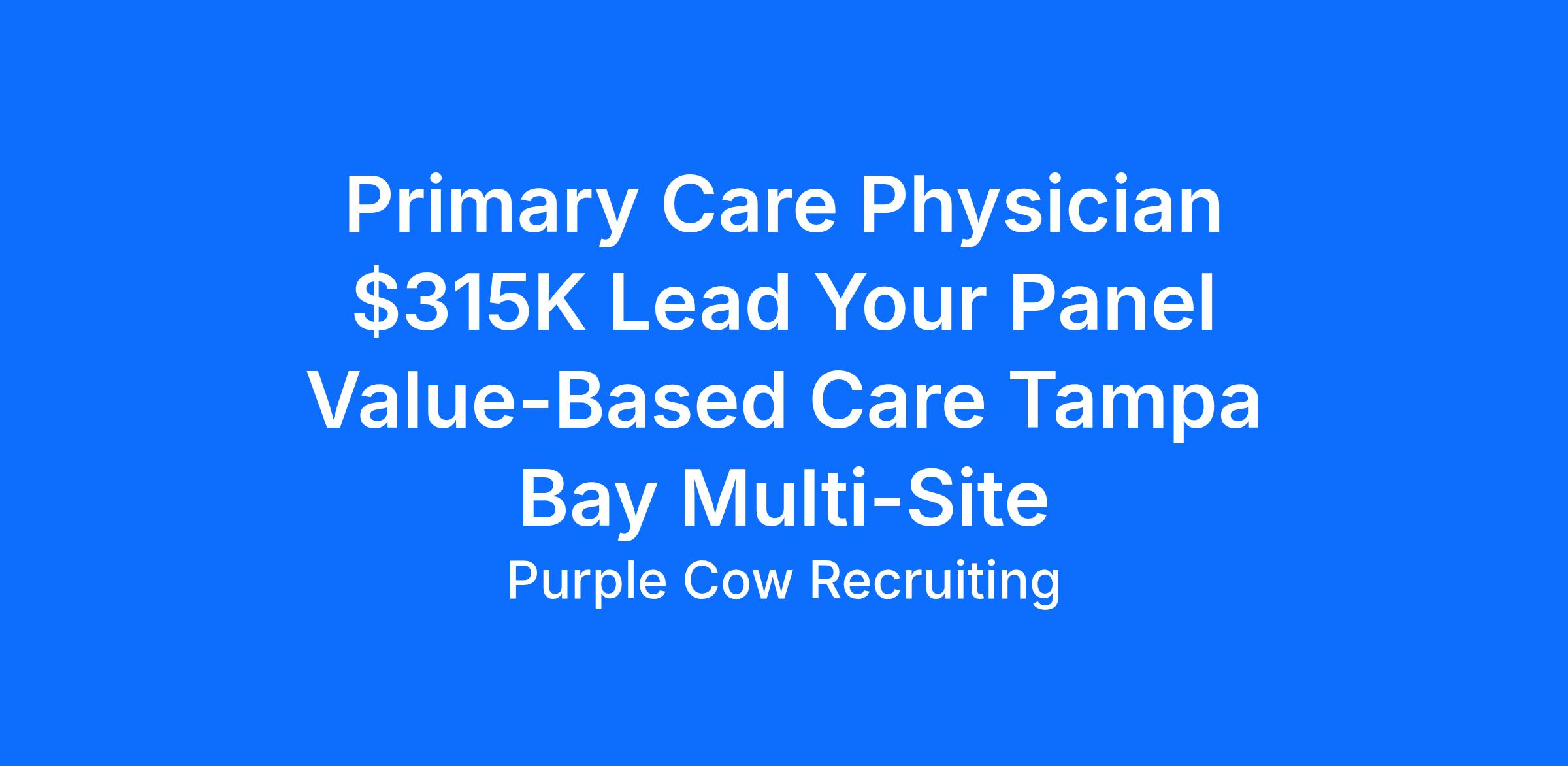 Primary Care Physician $315K Lead Your Panel Value-Based Care Tampa Bay Multi-Site